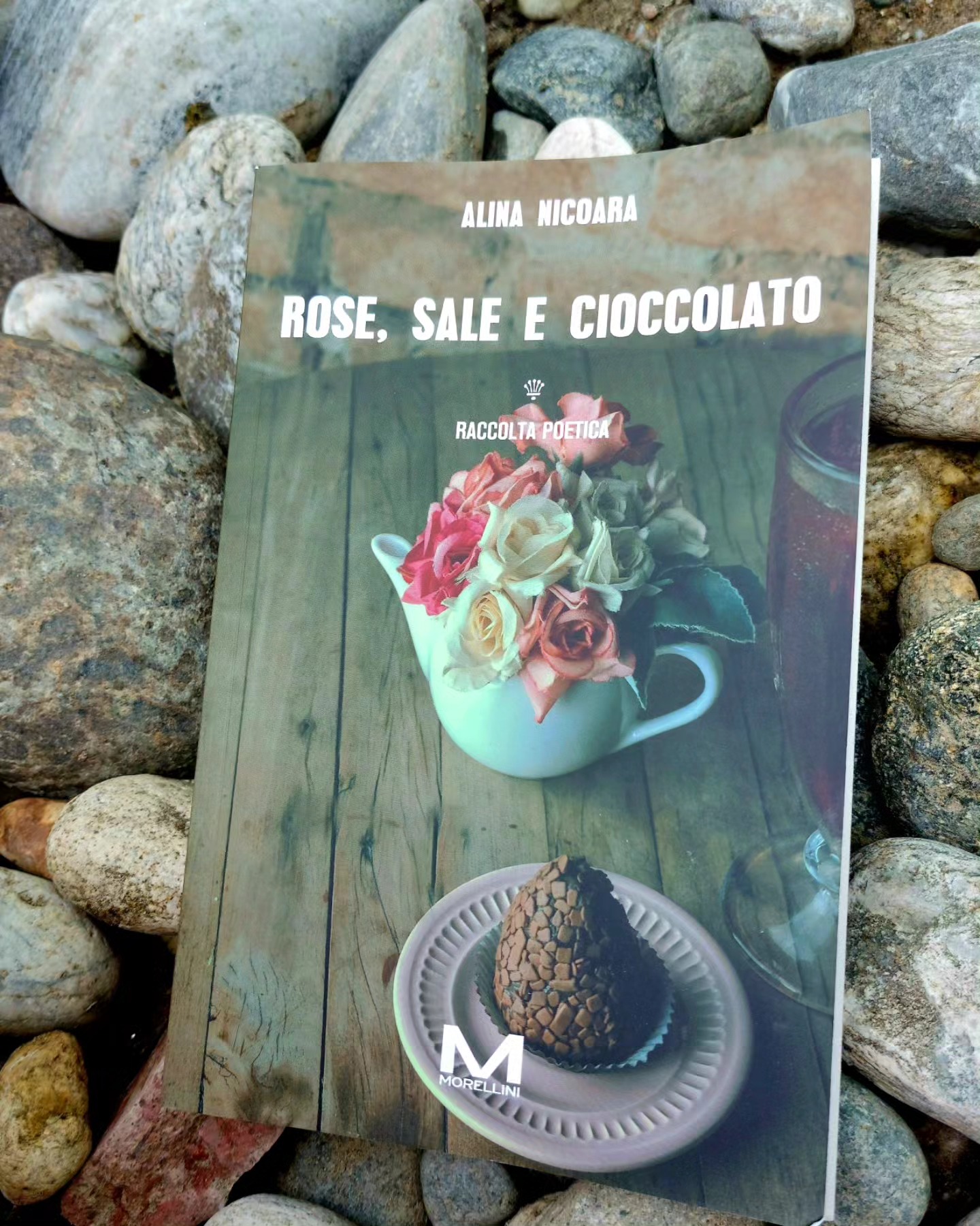 A.N.: Într-o zi când mă întorceam de la școală mi-a venit ideea titlului, iar editura l-a păstrat. De ce? Pentru că orice relație, fie cu tine, cu prietenii, are mai multe faze, una plăcută precum trandafirii, după care apare sarea, care are rolul ei, e necesară chiar dacă uneori face rău. Știți povestea cu sarea în bucate, nu? Ciocolata vine la sfârșit pentru că dacă depășești în echilibru fazele anterioare poți să vezi frumosul, adică acel dulce al relației. Câți dintre noi au încercat vreodată să exprime în cuvinte ceea ce simt? Eu când am lăsat emoțiile să curgă și le-am cuprins în cuvinte, s-au transformat în versuri. ,,Eu și tu: Drumurile noastre s-au intersectat/lăsând cenușă și drumuri pârjolite/ pentru ca eu să învăț să mă iubesc,/ca tu să înveți să iubești“. În limba italiană, pentru că în italiană scriu, versurile par mai profunde, mai aproape de noi.