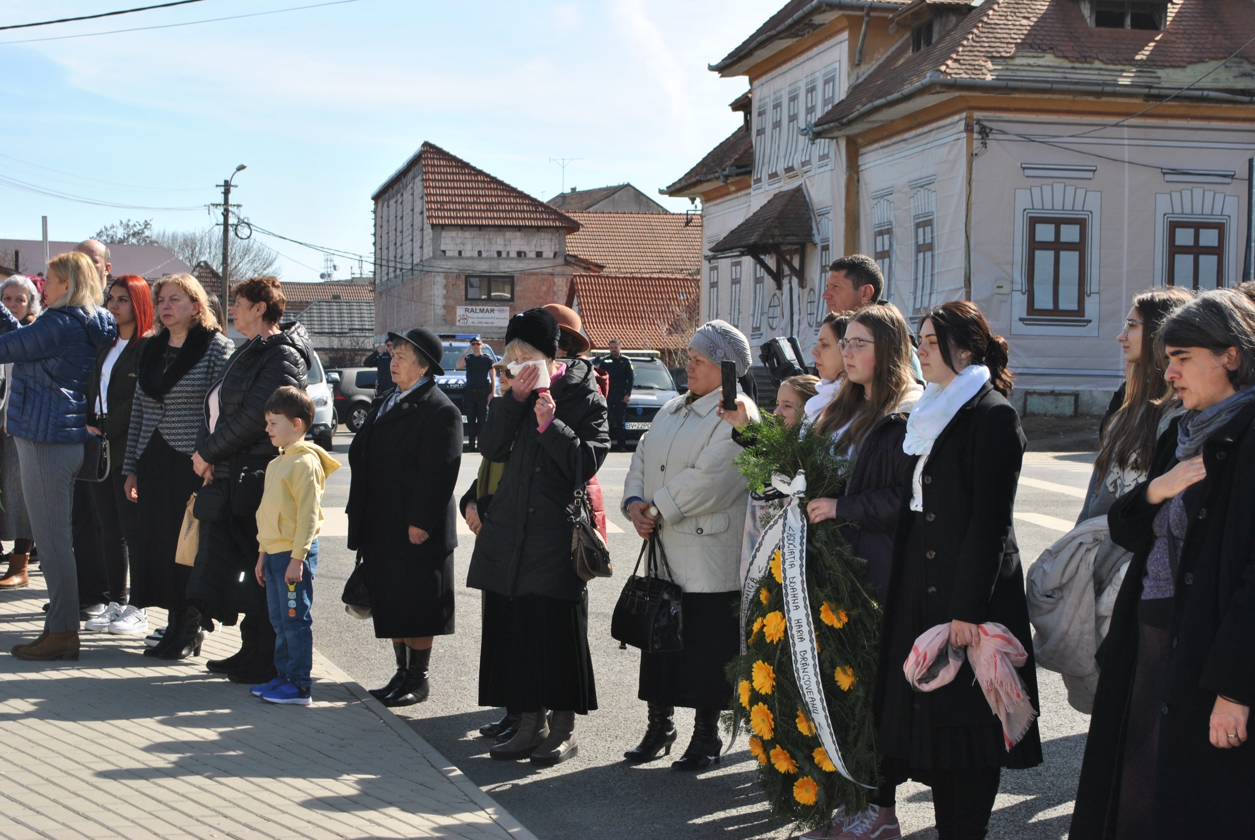 Comemorare în fața unui monument degradat