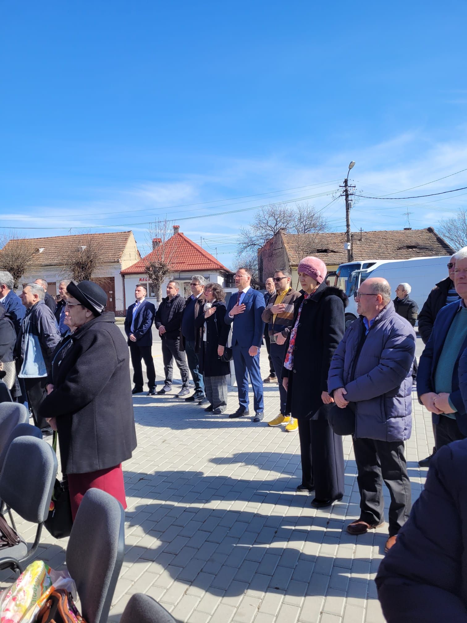 Comemorare în fața unui monument degradat