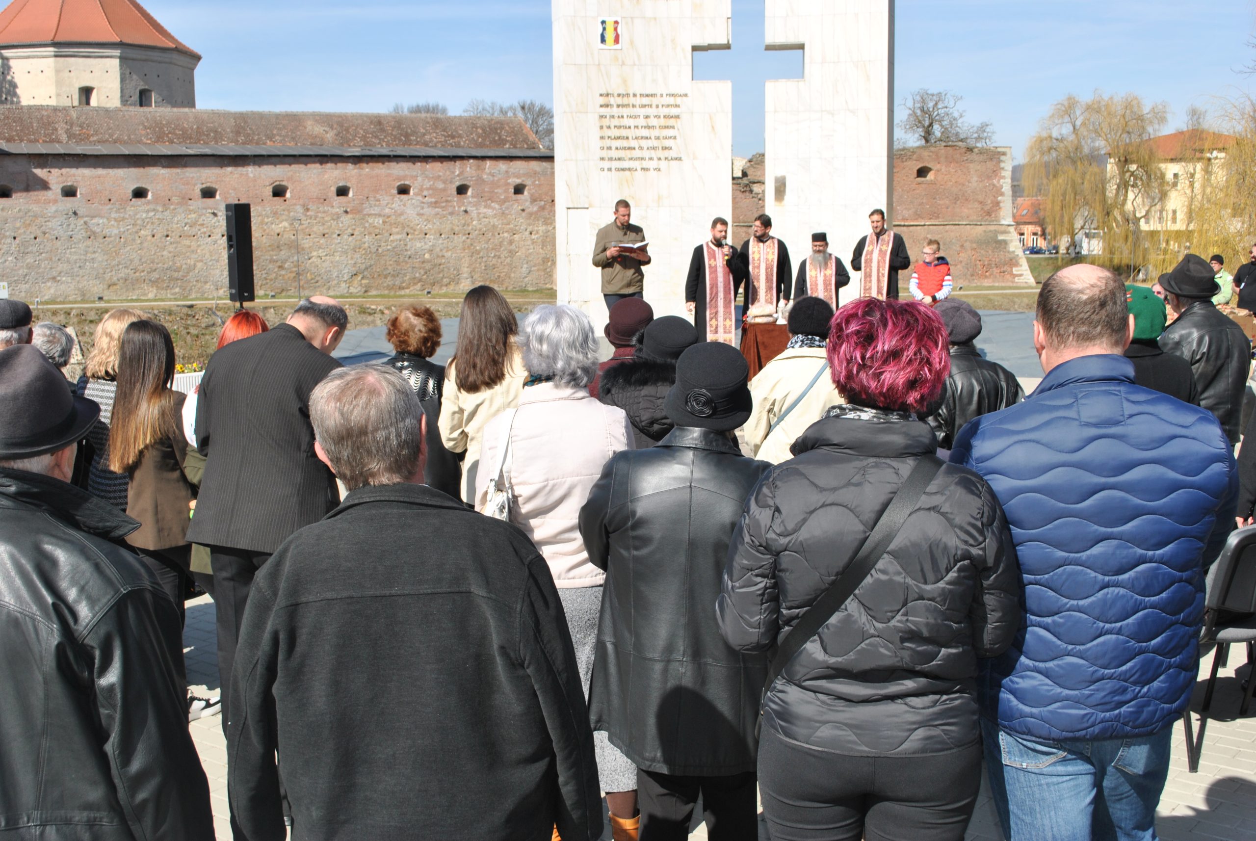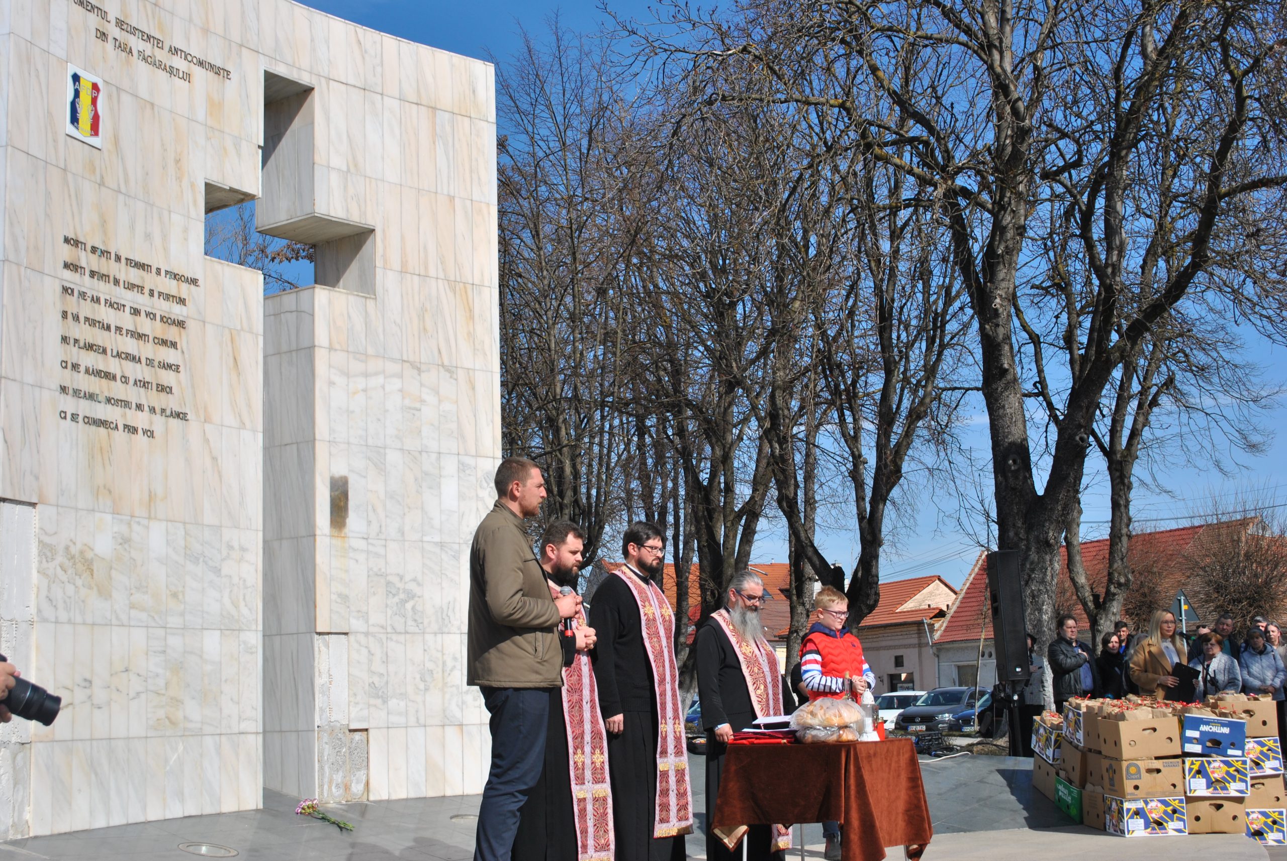 “Nu plângem lacrimă de sânge,/ci ne mândrim cu-atâţi eroi./Nu! Neamul nostru nu vă plânge,/ci se cuminecă prin voi“. Sunt versuri scrise de Radu Gyr, poetul închisorilor comuniste, care ar trebui să fie călăuză pentru neamul românesc. N-au fost recitate aceste versuri la comemorarea eroilor anticomuniști de duminică, 9 Martie, la Monumentul Rezistenței Anticomuniste din Făgăraș, deși se cuvenea acest lucru. N-au fost pomeniți nici eroii anticomuniști din Țara Făgărașului. N-a fost nici vreo ceremonie militară la Monument. A fost în schimb o ceremonie religioasă oficiată de doar patru preoți ortodocși deși în închisorile comuniste au fost încarcerați preoți de toate cultele religioase. A fost un parastas cu ,,Veșnică pomenire“, iar la finalul acestuia s-au împărțit pachete cu mucenici, un măr și o portocală. Participanții la eveniment au fost din rândurile urmașilor foștilor deținuți politici și cei câțiva foști deținuți politici care mai sunt printre noi.
