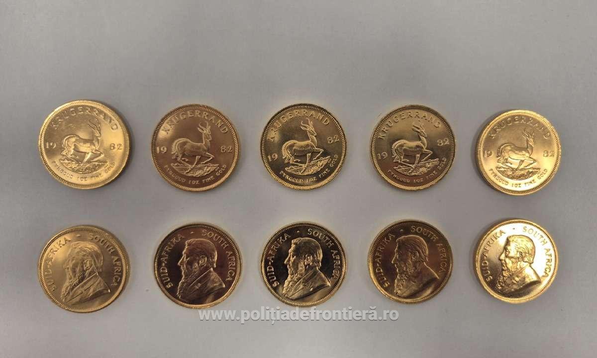 O femeie care intenționa să călătorească din România spre Marea Britanie a fost oprită pe Aeroportul Internațional Brașov după ce autoritățile au descoperit în bagajul său mai multe monede nedeclarate, cu o valoare estimată la 150.000 de lei. S-a întâmplat la data de 6 aprilie 2025, pe sensul de ieșire din țară, în urma unui control efectuat de polițiștii de frontieră din cadrul Sectorului Poliției de Frontieră Aeroport Brașov, în colaborare cu lucrători vamali ai Direcției Regionale Vamale Brașov. Bagajele femeii au fost supuse unui control amănunțit, ocazie cu care au fost descoperite zece monede confecționate dintr-un metal de culoare galbenă, inscripționate „Suid Afrika – South Africa”. Pasagera a declarat că monedele provin dintr-o moștenire, însă nu a putut prezenta documente care să ateste proveniența acestora și nici autorizație pentru transportul lor în afara țării. Monedele au fost reținute de autoritățile vamale pentru expertizare, iar în cauză a fost deschis un dosar penal pentru săvârșirea infracțiunii de contrabandă, faptă prevăzută de Legea nr. 86/2006. Polițiștii de frontieră continuă cercetările pentru stabilirea exactă a valorii, provenienței și regimului legal al bunurilor descoperite.
