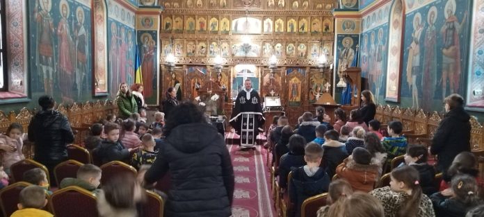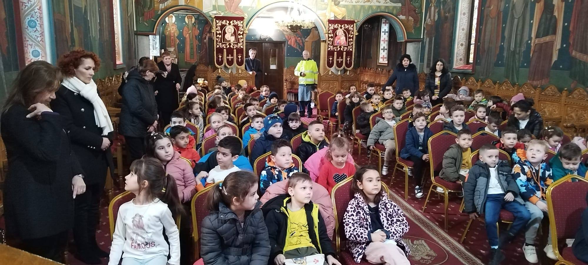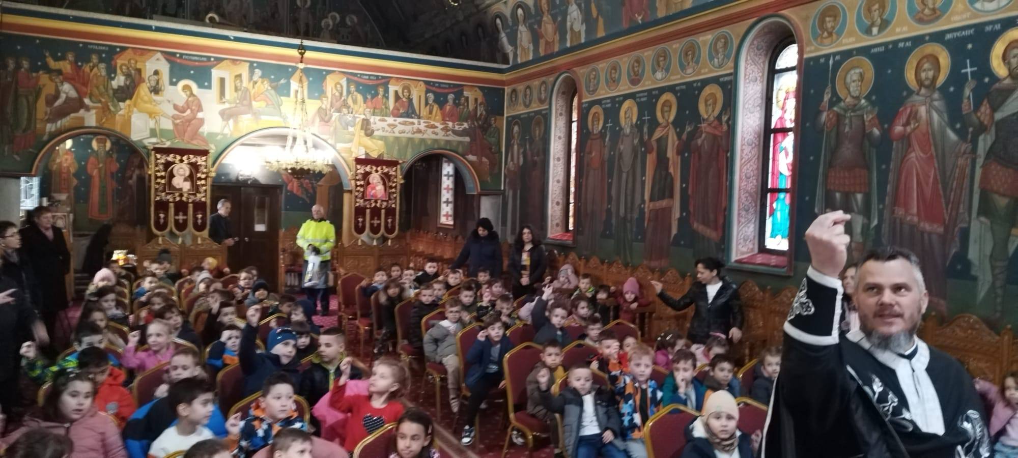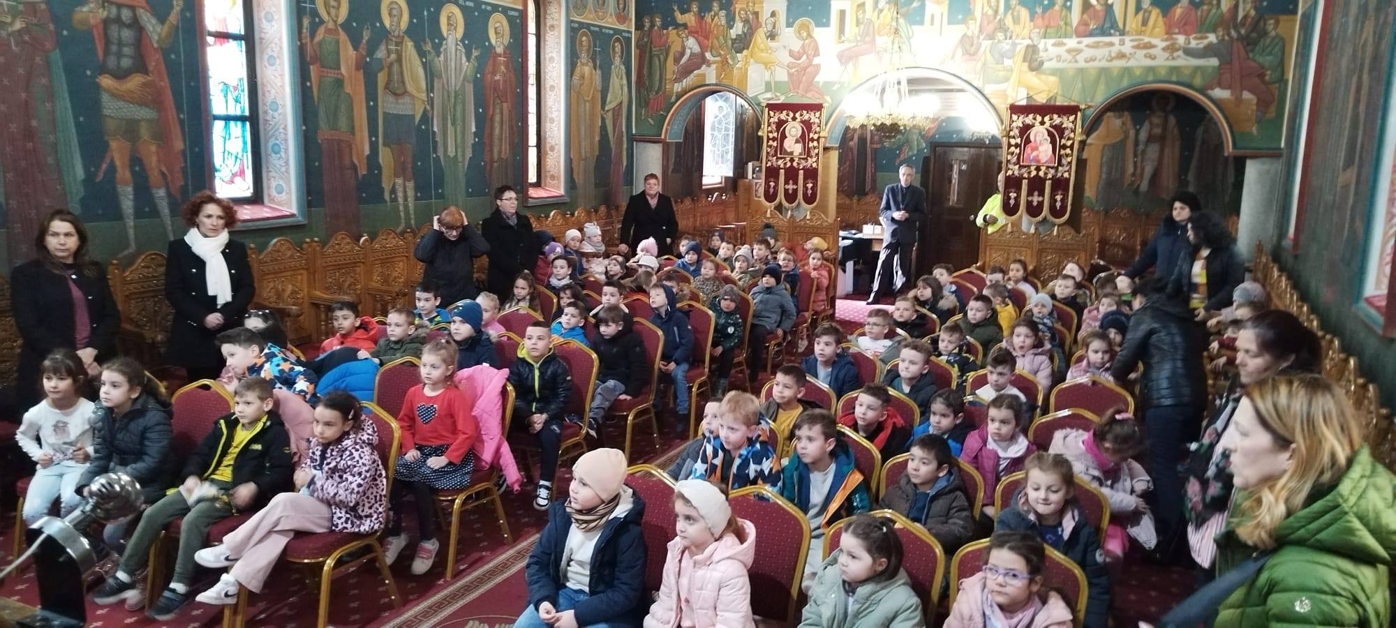 Copiii de la Grădinița Albinuța Făgăraș vin însoțiți de educatoarele lor la fiecare mare praznic împărătesc. Au fost în postul Crăciunului și au revenit și în postul Paștelui.