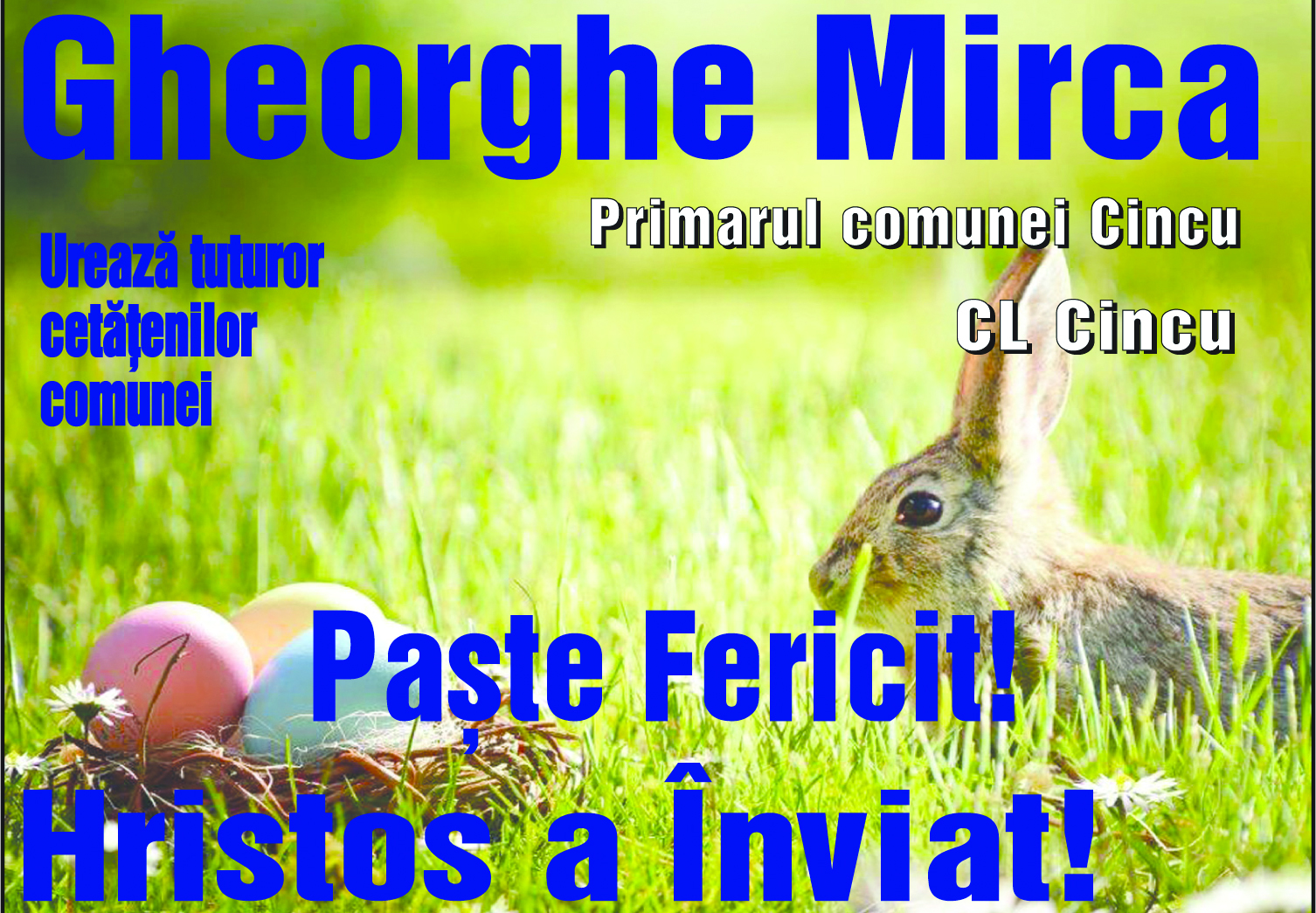 În pragul celei mai mari sărbători creştine, Învierea, se cuvine să fim călăuziţi de Lumina Lumii, de Mântuitorul Iisus Hristos. Să uităm măcar pentru o clipă de orgolii, de invidie, de furăciuni, de corupţie şi de supărări şi să dăm frâu smereniei şi faptelor bune.