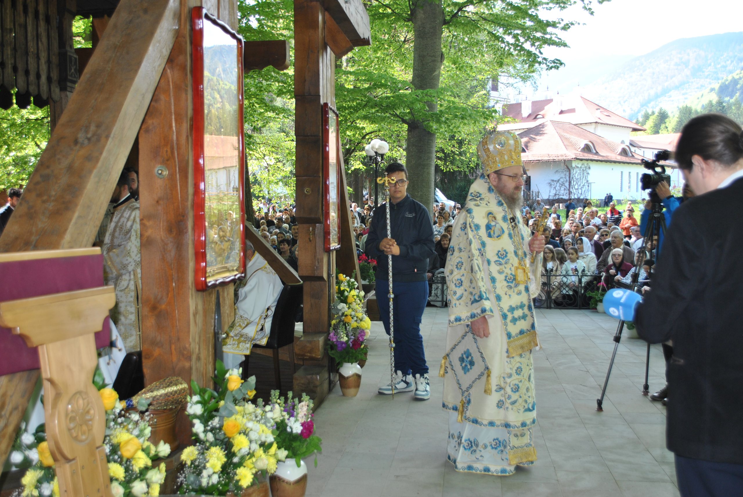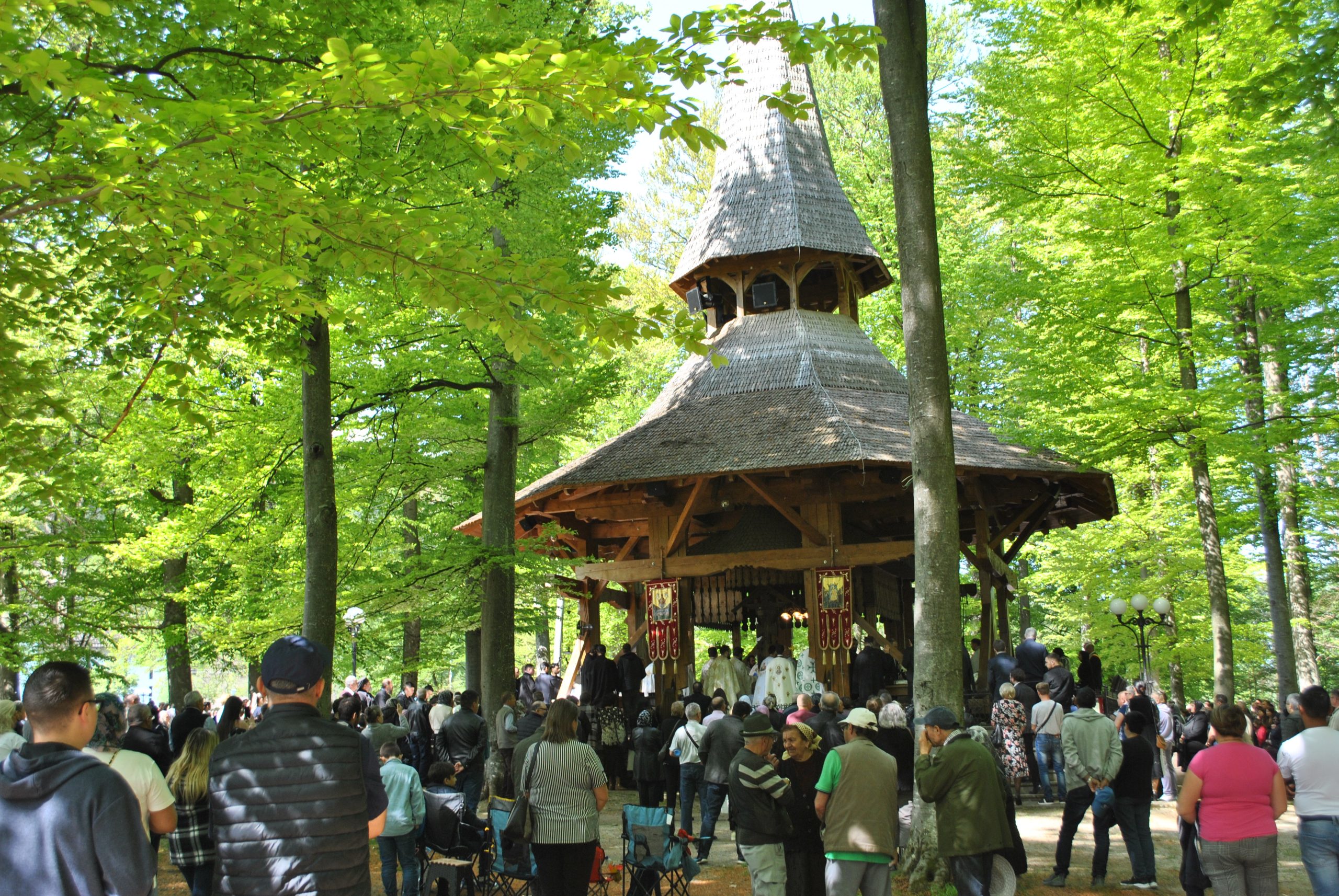 În Vinerea din Săptămâna Luminată, 25 aprilie 2025, parcă toate drumurile duceau spre Mănăstirea Brâncoveanu de la Sâmbăta de Sus unde se prăznuia hramul ,,Izvorul Tămăduirii“, al doilea hram al lăcașului de cult. Aglomeraţie mare încă de la intrarea în complexul turistic, iar echipaje de poliţişti şi jandarmi încercau să fluidizeze traficul spre mănăstire. Comercianţi de tot felul, cu suveniruri, cu icoane, cu mici, bere, fripturi sau cozonaci, au ocupat spațiile de lângă drumul de acces pre mănăstire. Dar cu cât te apropiai de poarta mănăstirii şi lăsai în urmă fumul grătarelor și zgomotul teraselor, liniştea se instala treptat. Muntele îţi da, parcă, o siguranţă rece şi plăcută, în timp ce soarele încerca să îndepărteze cei câțiva nori formați, zâmbind uşor printre copaci. În jurul altarului din pădure, lume multă, liniştea pădurii fiind întreruptă de troparul Învierii. Prin staţiile montate la altar, liturghia răzbătea peste culmile munţilor. Un loc mai minunat precum acesta n-am mai găsit, spuneau unii credincioşi veniţi de departe pentru acest praznic. Oameni din nordul ţării, din judeţele din sud, dar şi din împrejurimile Ţării Făgăraşului s-au aşezat în jurul altarului din pădure cu privirile aţintite spre soborul de preoţi. IPS Laurenţiu Streza, Mitropolitul Ardealului, a oficiat Sfânta Liturghie. Față de alți ani, în altarul din pădure au participat la slujbă PS Sofian Brașoveanul- Episcop-vicar al Arhiepiscopiei Ortodoxe Române a Germaniei, Austriei și Luxemburgului, PS Ilarion Făgărășeanul, episcop al Arhiepiscopiei Sibiului, Părintele Zenovie, starețul Mănăstirii Nechit, Părintele Avdie, starețul Mănăstirii Sf. Arsenie de pe Valea Sâmbetei, starețul și preoții călugări de la Mănăstirea Brâncoveanu, dar și alți zeci de preoți parohi din Țara Făgărașului.