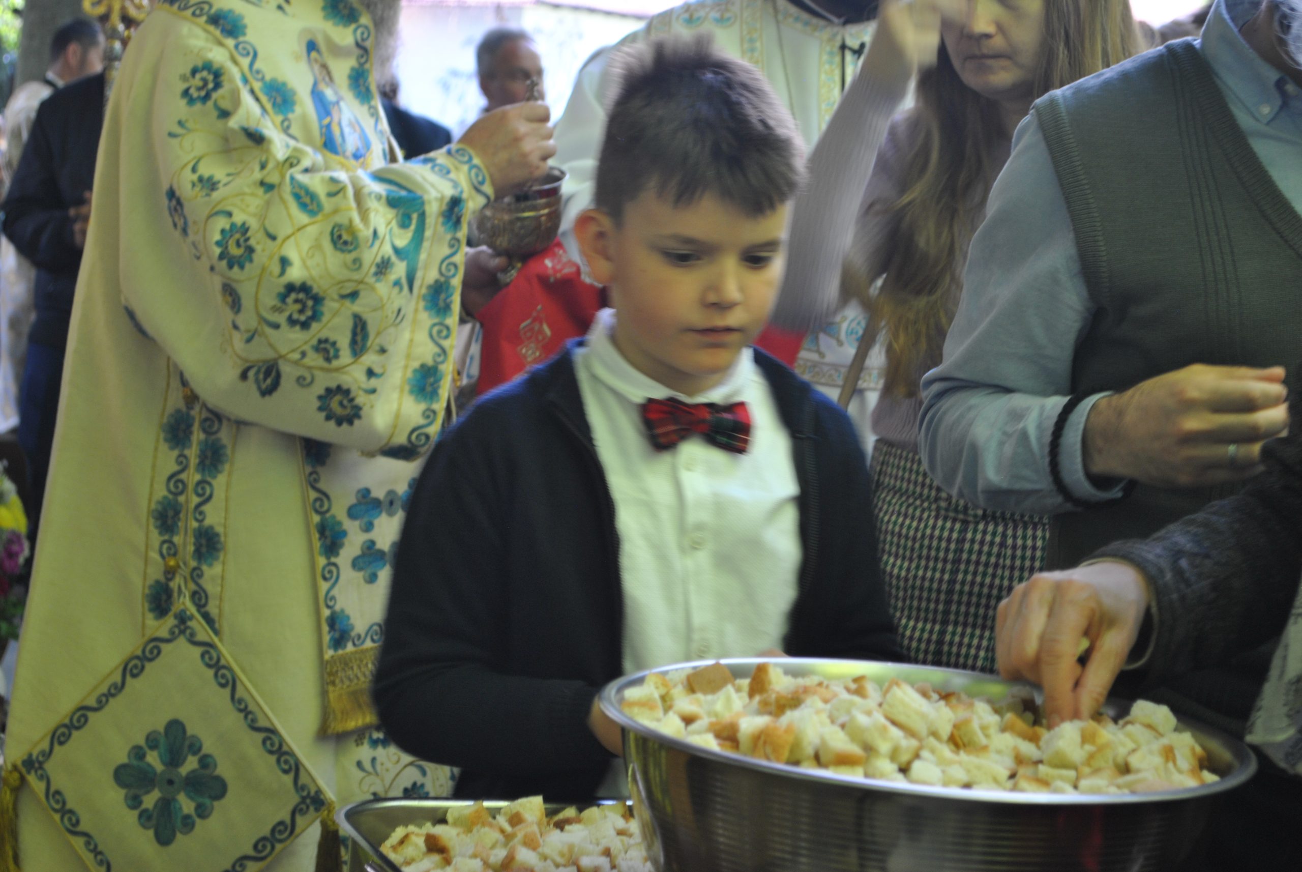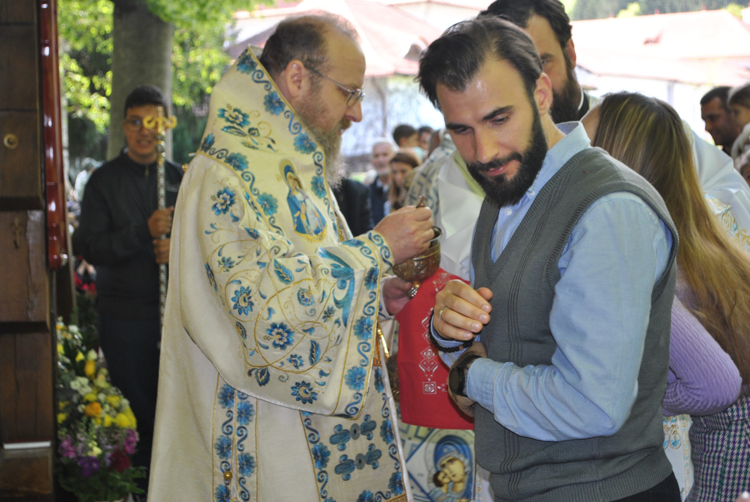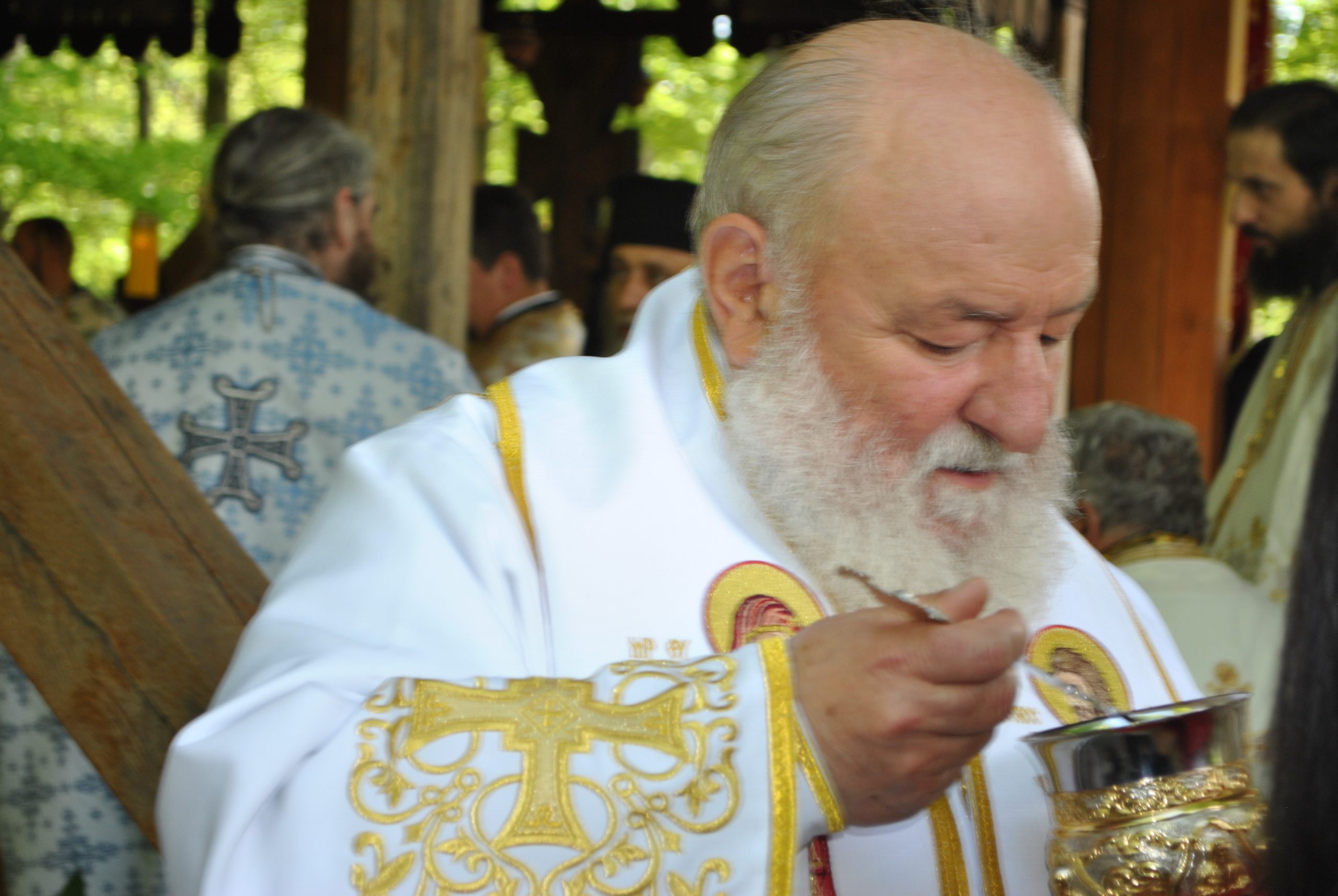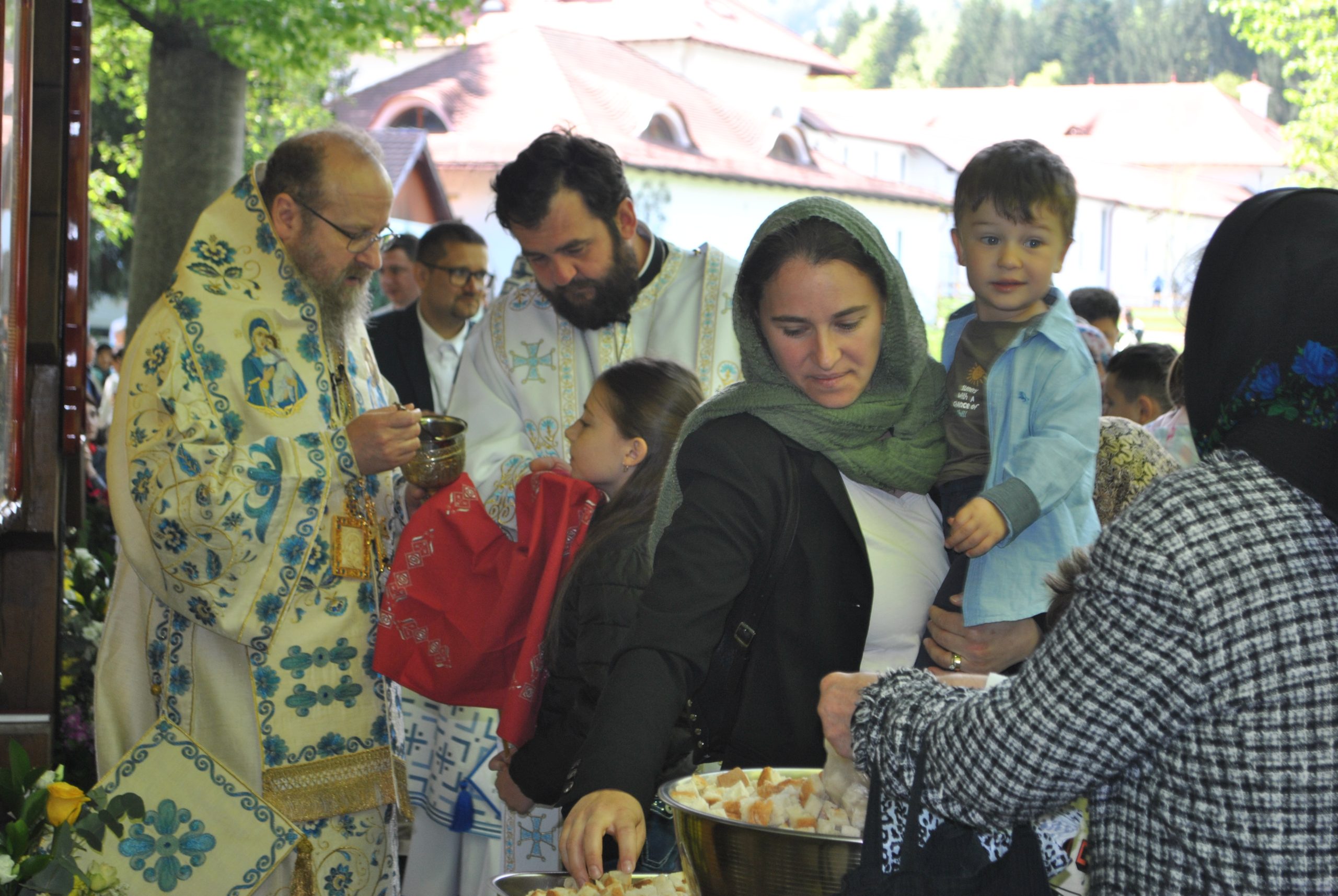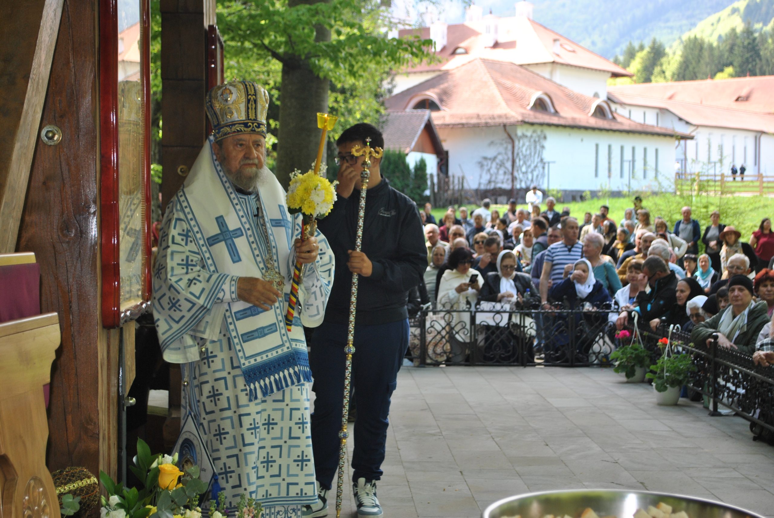 În timp ce preoții prezenți au fost împărtășiți de episcoul Ilarion Făgărășeanul, PS Sofian Brașoveanul a predicat mulțimii. A vorbit despre Sf. Serafim Popescu, starețul Mănăstirii Brâncoveanu. În cuvinte simple, pe înțelesul tuturor, a creionat imaginea sfântului Serafim cel Răbdător. A fost așteptată predica Mitropolitului Ardealului, IPS Laurențiu Streza, care a vorbit despre Învierea Mântuitorului, despre Maica Domnului și despre puterea credinței.