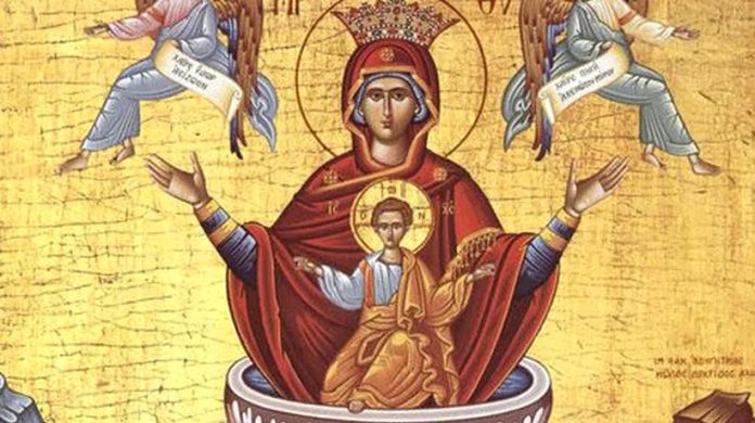În icoana sărbătorii Izvorul Tămăduirii, Maica Domnului şi Hristos se află într-un bazin asemănător cu o cristelniţă, vasul în care primim Taina Botezului. Fecioara Maria este reprezentată cu mâinile înălţate, semn al rugăciunii, iar Mântuitorul binecuvântând cu ambele mâini, ca răspuns al rugăciunilor maicii Sale. Din bazin izvorăşte apa care are darul tămăduirii bolilor sufleteşti şi trupeşti. Această icoană exprimă ideea că Fecioara L-a născut pe Hristos, Care este Dătătorul apei vii a Duhului. De altfel, însuşi Hristos i-a spus femeii samarinence: „De ai fi ştiut darul lui Dumnezeu şi cine este Cel ce zice ţie: dă-mi să beau, tu ai fi cerut de la Dânsul şi ţi-ar fi dat ţie apa vie“ (În. 4, 10; În. 7, 38).