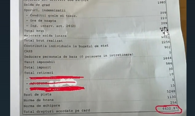 Un tânăr jandarm în vârstă de doar 19 ani a ales să-şi facă public salariul, stârnind numeroase reacţii în mediul online. Fluturaşul de salariu a fost trimis unui influencer cunoscut pentru comparaţiile salariale din sistemul public din România, iar cifrele prezentate au surprins mulţi dintre cei care au vizionat clipul, potrivit Ştiri Diaspora. Tânărul, încadrat în luna decembrie 2024 prin sursă externă, adică în urma unei selecţii directe, fără să fi urmat o şcoală militară, avea, la doar trei luni de la angajare, un salariu net de 6.632 lei, echivalentul a aproximativ 1.335 de euro. Salariul brut declarat a fost de 8.639 de lei. Jandarmul, încadrat cu gradul de sergent major, lucrează în cadrul structurii de ordine publică şi nu beneficiază nici de bani de chirie, nici de decontarea transportului. Cu toate acestea, în luna februarie 2025, el a efectuat un total de 61 de ore suplimentare, inclusiv sâmbăta, duminica şi în zilele de sărbători legale. Pentru acest efort, a primit suplimentar aproximativ 1.160 de lei, sumă inclusă în salariul net menţionat.