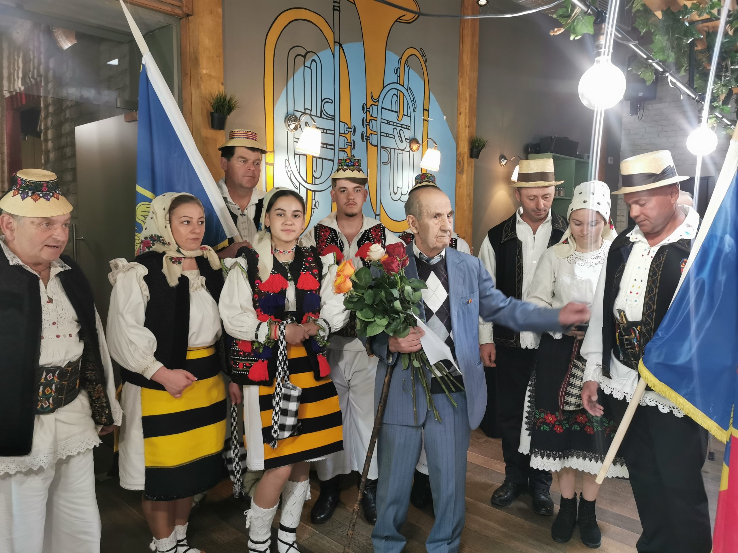 Un grup de localnici din Mara, Maramureș, însoțit de preotul lor i-au creat o mare bucurie eroului din Munții Vrancei prin prezența lor, cântecele și portul popular.