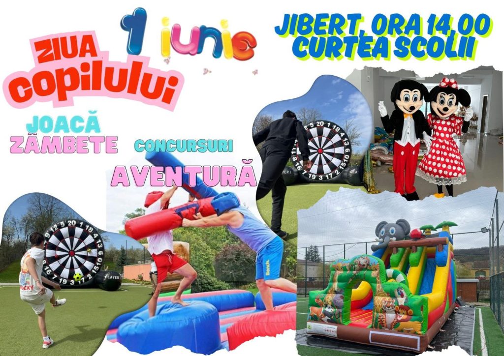 - ,,Va fi o zi dedicată celor mai tineri membri ai comunității, copiii. Vă invităm cu mic, cu mare la o zi plină de joacă, zâmbete, aventură și concursuri. Ne vom bucura împreună de: activități distractive și interactive, tobogan gonflabil și jocuri de aventură, concursuri pentru toate vârstele, surprize speciale pentru cei mici, mascote îndrăgite din desene animate. Participarea este gratuită pentru toți copiii din comuna Jibert“ anunță Primăria Jibert.