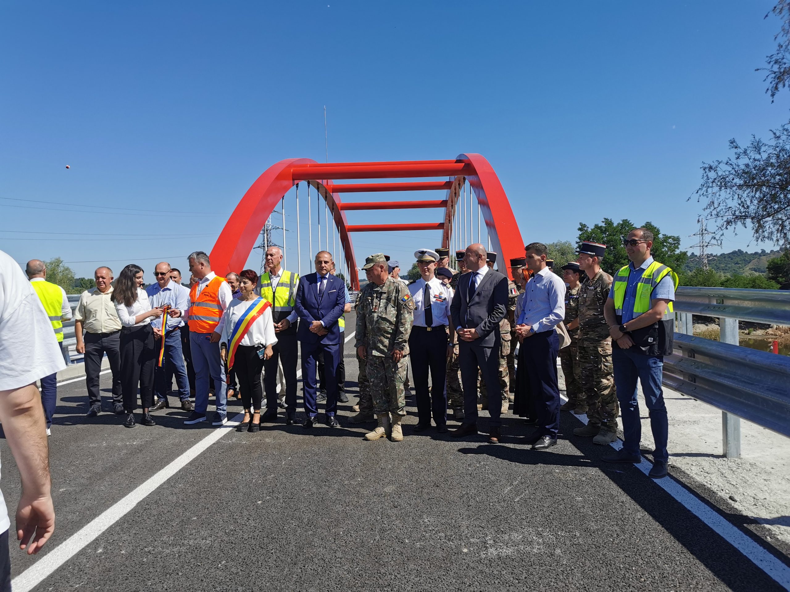 Foto și Video. Se circulă pe podul de la Voila. Inaugurarea a avut loc astăzi, în prezența autorităților, constructorului, militarilor NATO și a localnicilor