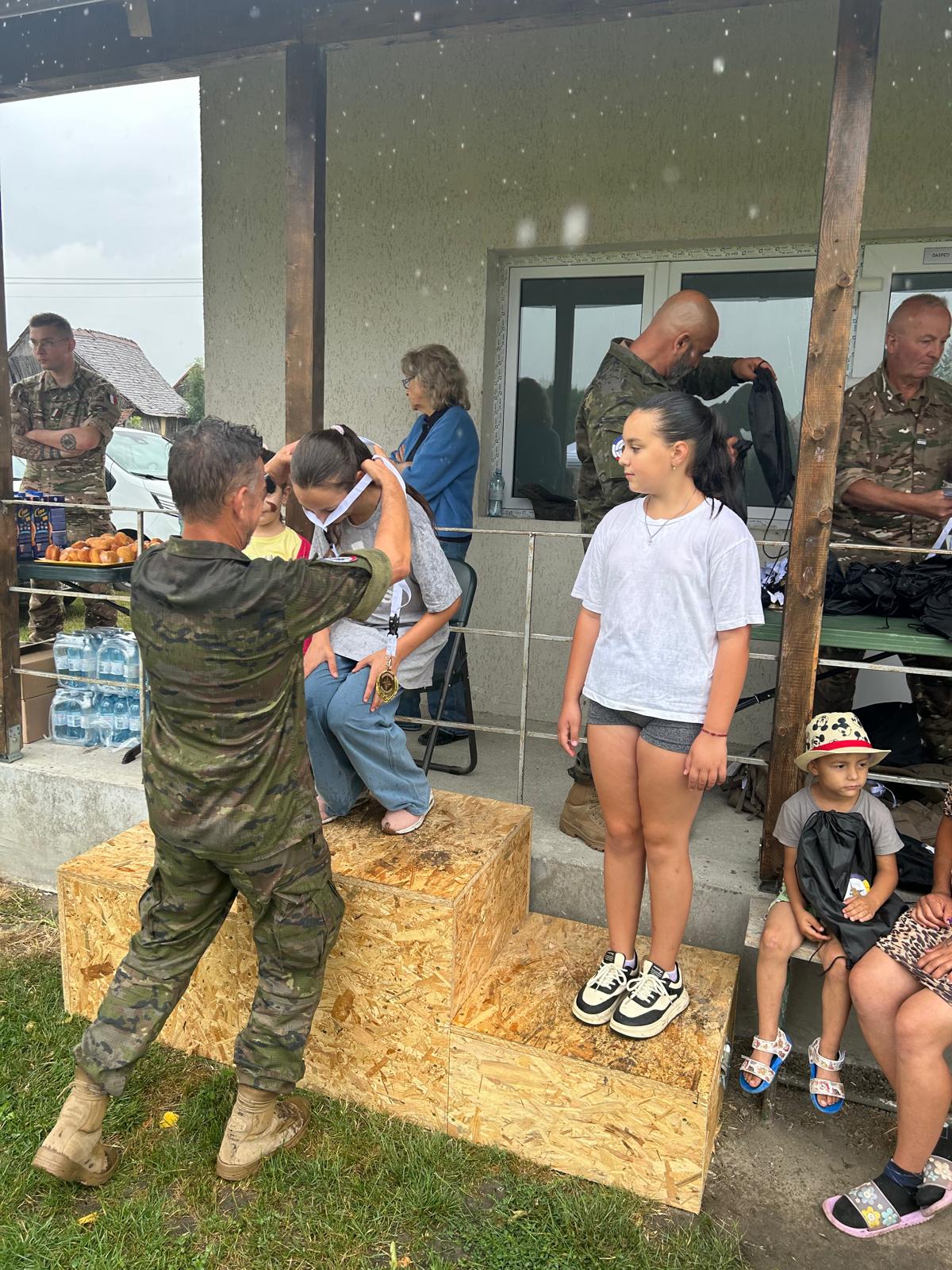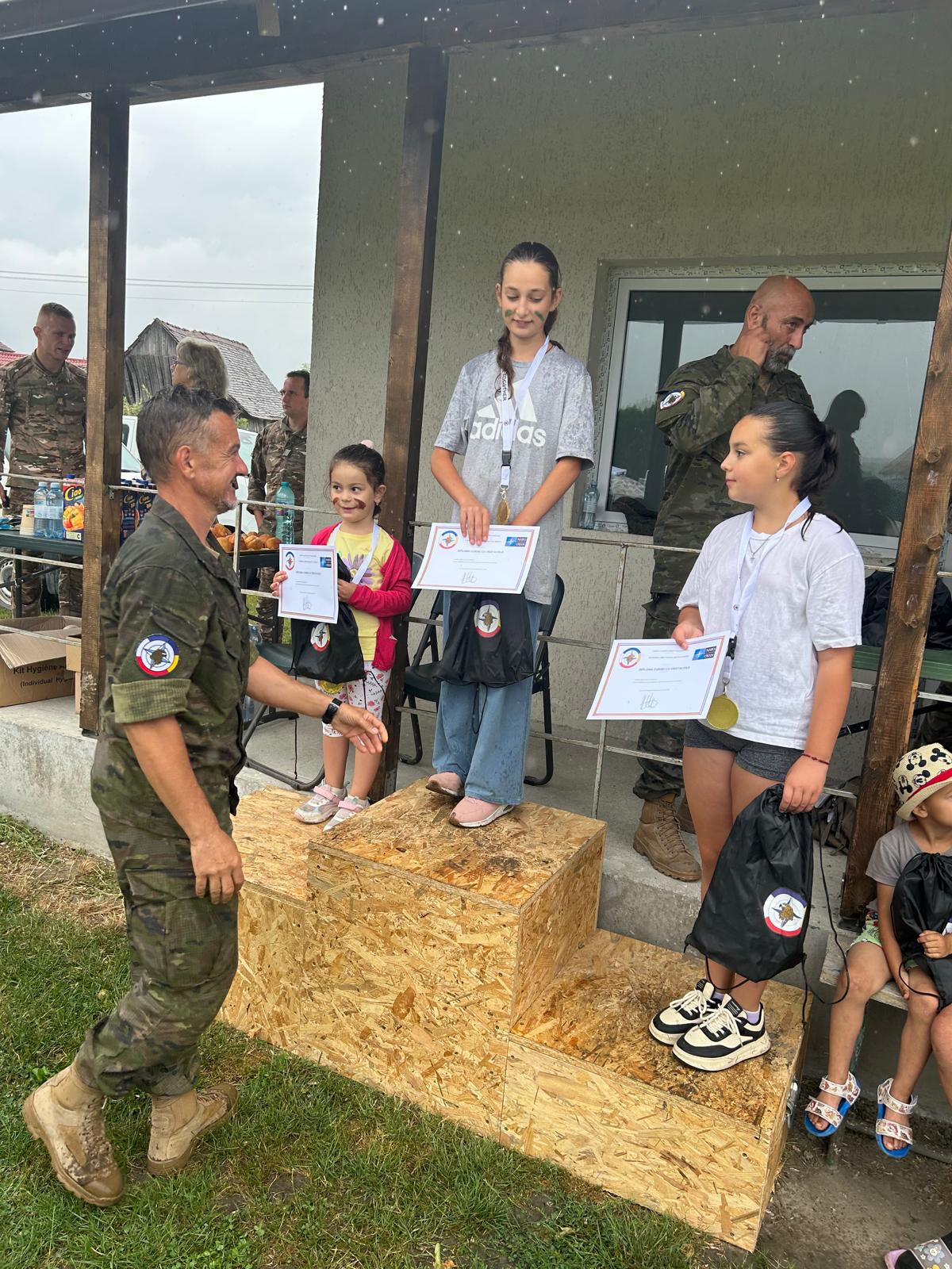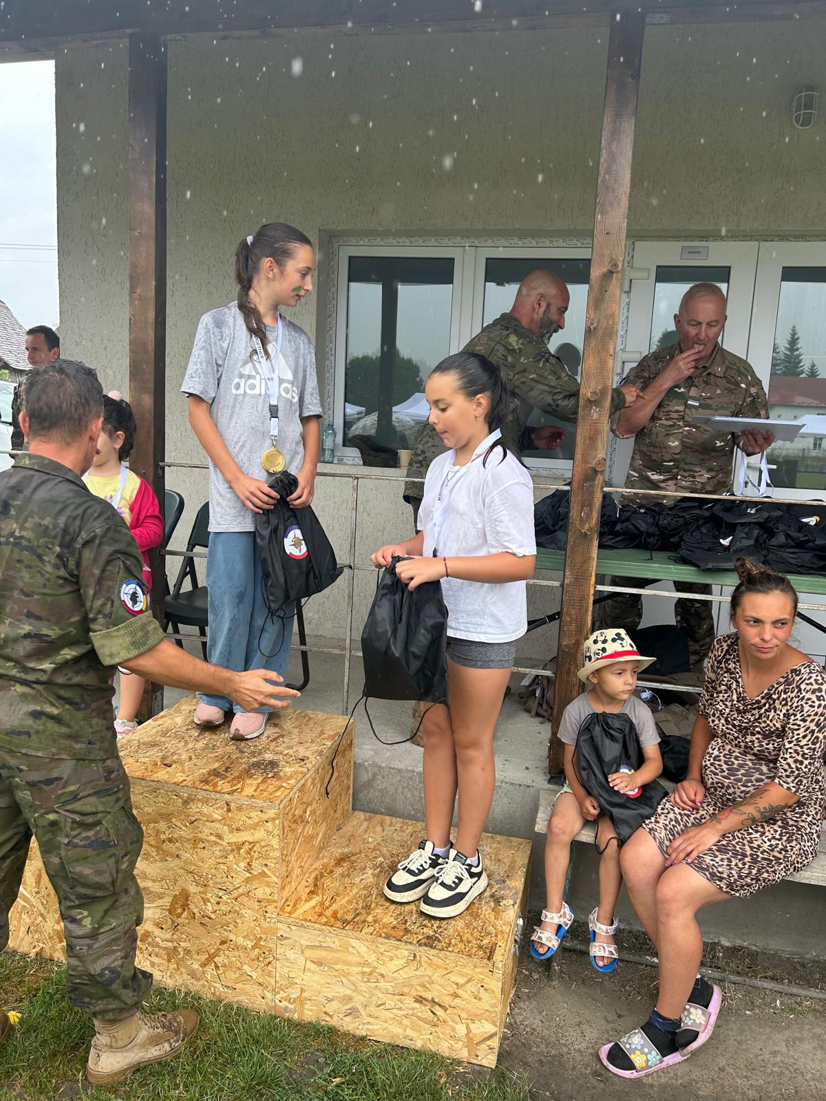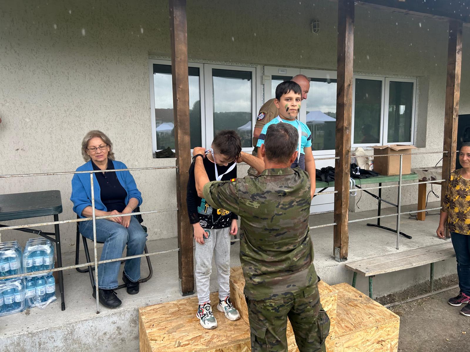 Peste 30 de copii au așteptat prezentarea tehnicii militare, fiind impresionați de cele două  vehicule Hummer aduse pe teren de delegația NATO. În cadrul atelierelor, organizatorii au stabilit un traseu pentru a evalua prestațiile copiilor din punct de vedere fizic. Pe podium au urcat cei mai buni copii de la  fiecare categorie de vârstă, care au fost premiați cu diplome,  medalii și daruri. Deși evenimentul a fost programat să se încheie la ora 13.30, ploaia a scurtat   desfășurarea activităților,  dar și așa toți participanții au fost serviți cu suc de fructe și biscuiți.  (Lucia BAKI)