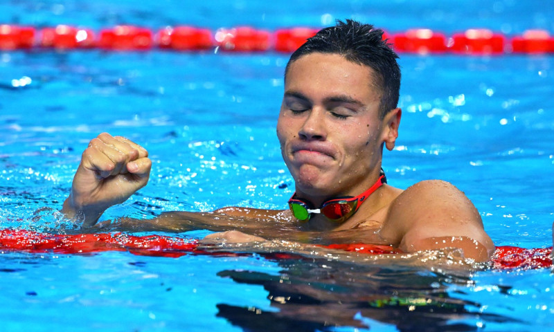 David Popovici a cucerit medalia de aur la finalul cursei de 100 de metri liber de la Campionatele Mondiale de Natație de la Singapore. David Popovici (20 de ani) a d a câștigat fără emoții, cu un timp de 46.51, care reprezintă recordul competiției. În spatele românului a terminat americanul Jack Alexy (22), care a plecat de pe culoarul 4, cel destinat favoritului, și a atins marginea bazinului după 46.92 secunde.