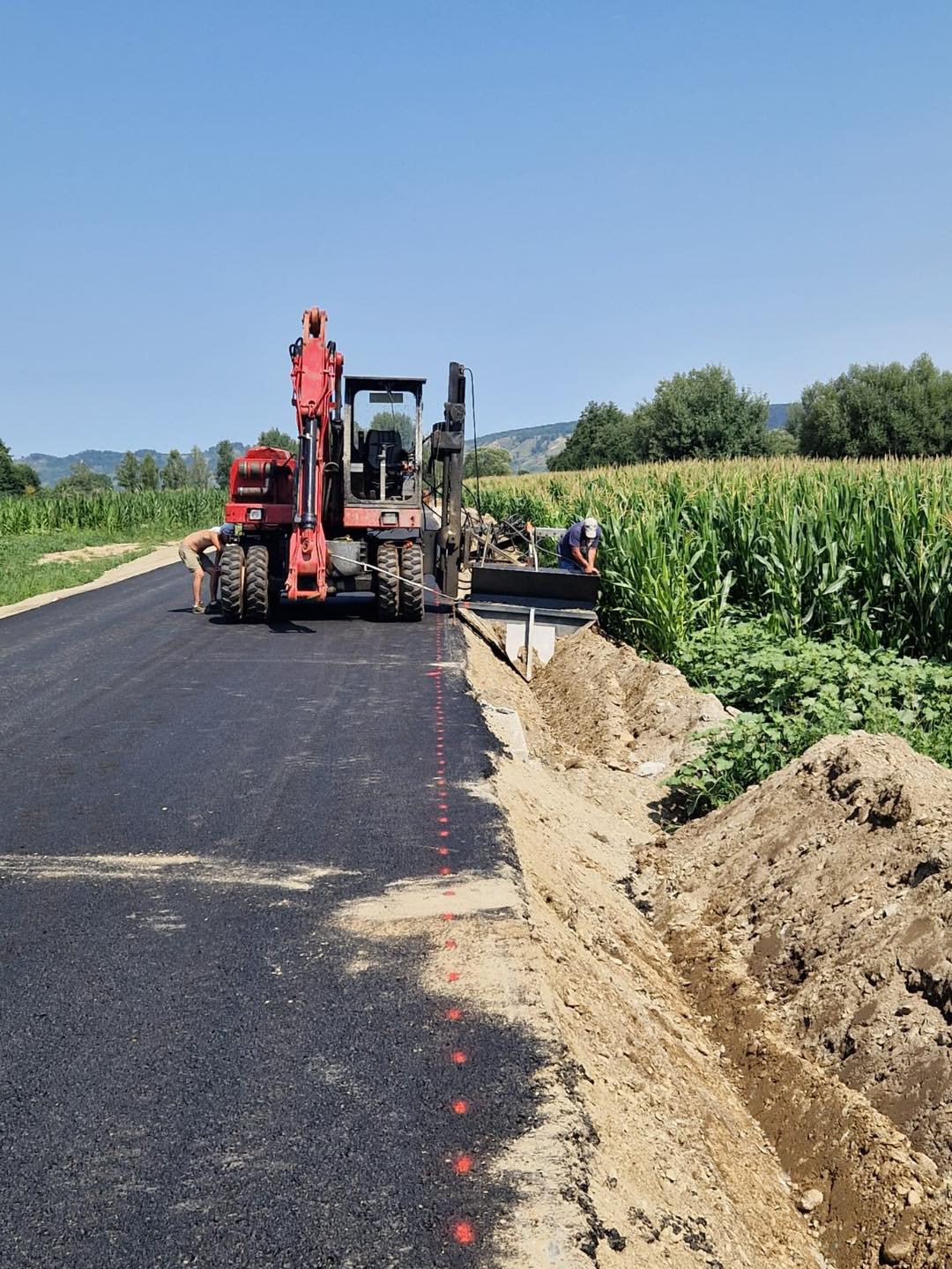 •   în intravilan sunt în lucru rigolele de evacuare a apelor pluviale, s-a executat reciclarea stratului de balast al părţii carosabile şi este în pregătire etapa de aşternere a primului strat de asfalt.