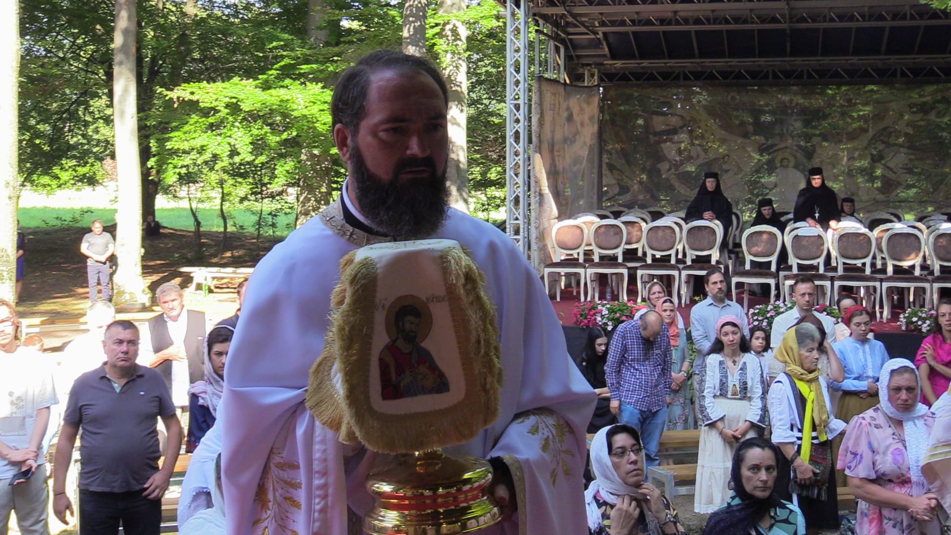 Astăzi s-a încheiat ,,Săptămâna Sf. Cuvios Serafim cel Răbdător de la Sâmbăta de Sus“cu noi evenimente organizate la Mănăstirea Brâncoveanu. Dimineața la ora 8.00 s-a citit Acatistul Sf. Cuv. Serafim cel Răbdător de la Sâmbăta de Sus și Ceasurile III și VI. La altarul de vară s-a oficiat Sfânta Liturghie arhierească la care au participat înalți ierarhi, preoți, călugări. PS Ilarion Făgărășanul a oficiat Sf. Liturghie. Racla cu moaștele Sfântului a rămas în continuare pentru închinare, iar credincioșii s-au bucurat să se închine. De la ora 17.00, în Aula Academiei au avut loc lansarea și proiecția filmului documentar „Sfântul CuviosSerafim cel Răbdător de la Sâmbăta de Sus”. În cadrul evenimentului de proclamarea locală a canonizării Sf Cuvios Serafim cel Răbdător, 16 august, IPS Laurențiu a oferit dinstincții pentru ostenitori. Înaltpreasfinţia Sa a acordat distincţia „Crucea şaguniană” pentru clerici a fost oferită arhim. Chiril Lovin, arhid. asist. univ. dr. Gheorghe Cristian Popa şi diac. lect. univ. dr. Sabin Preda, iar „Crucea şaguniană pentru mireni” a fost oferită consilierului patriarhal Răzvan Mihai Clipici, secretarului eparhial Sorin Gabriel Pomană, lui Răzvan Lucian Bădescu, pictorul icoanei Sfântului Serafim cel Răbdător şi lui Costel Nacu. De asemenea, Ordinul „Anastasia Şaguna” a fost oferit doamnei Mihaela Bădescu şi doamnei Simon Ştefania Iordache.