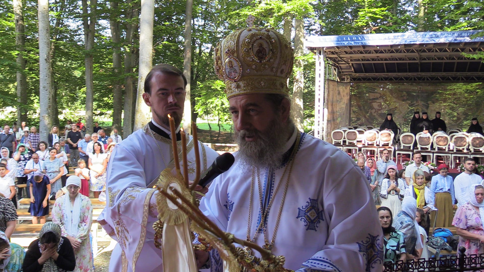 Astăzi s-a încheiat ,,Săptămâna Sf. Cuvios Serafim cel Răbdător de la Sâmbăta de Sus“cu noi evenimente organizate la Mănăstirea Brâncoveanu. Dimineața la ora 8.00 s-a citit Acatistul Sf. Cuv. Serafim cel Răbdător de la Sâmbăta de Sus și Ceasurile III și VI. La altarul de vară s-a oficiat Sfânta Liturghie arhierească la care au participat înalți ierarhi, preoți, călugări. PS Ilarion Făgărășanul a oficiat Sf. Liturghie. Racla cu moaștele Sfântului a rămas în continuare pentru închinare, iar credincioșii s-au bucurat să se închine. De la ora 17.00, în Aula Academiei au avut loc lansarea și proiecția filmului documentar „Sfântul CuviosSerafim cel Răbdător de la Sâmbăta de Sus”. În cadrul evenimentului de proclamarea locală a canonizării Sf Cuvios Serafim cel Răbdător, 16 august, IPS Laurențiu a oferit dinstincții pentru ostenitori. Înaltpreasfinţia Sa a acordat distincţia „Crucea şaguniană” pentru clerici a fost oferită arhim. Chiril Lovin, arhid. asist. univ. dr. Gheorghe Cristian Popa şi diac. lect. univ. dr. Sabin Preda, iar „Crucea şaguniană pentru mireni” a fost oferită consilierului patriarhal Răzvan Mihai Clipici, secretarului eparhial Sorin Gabriel Pomană, lui Răzvan Lucian Bădescu, pictorul icoanei Sfântului Serafim cel Răbdător şi lui Costel Nacu. De asemenea, Ordinul „Anastasia Şaguna” a fost oferit doamnei Mihaela Bădescu şi doamnei Simon Ştefania Iordache.