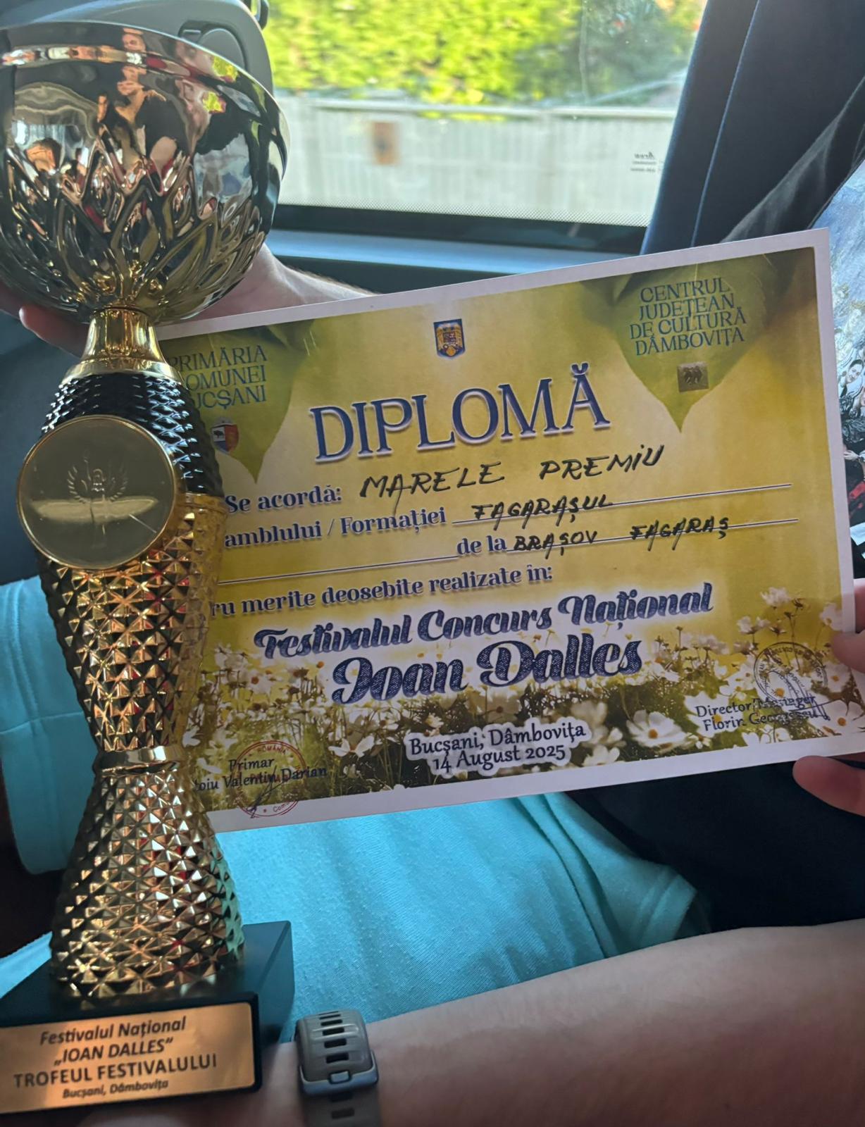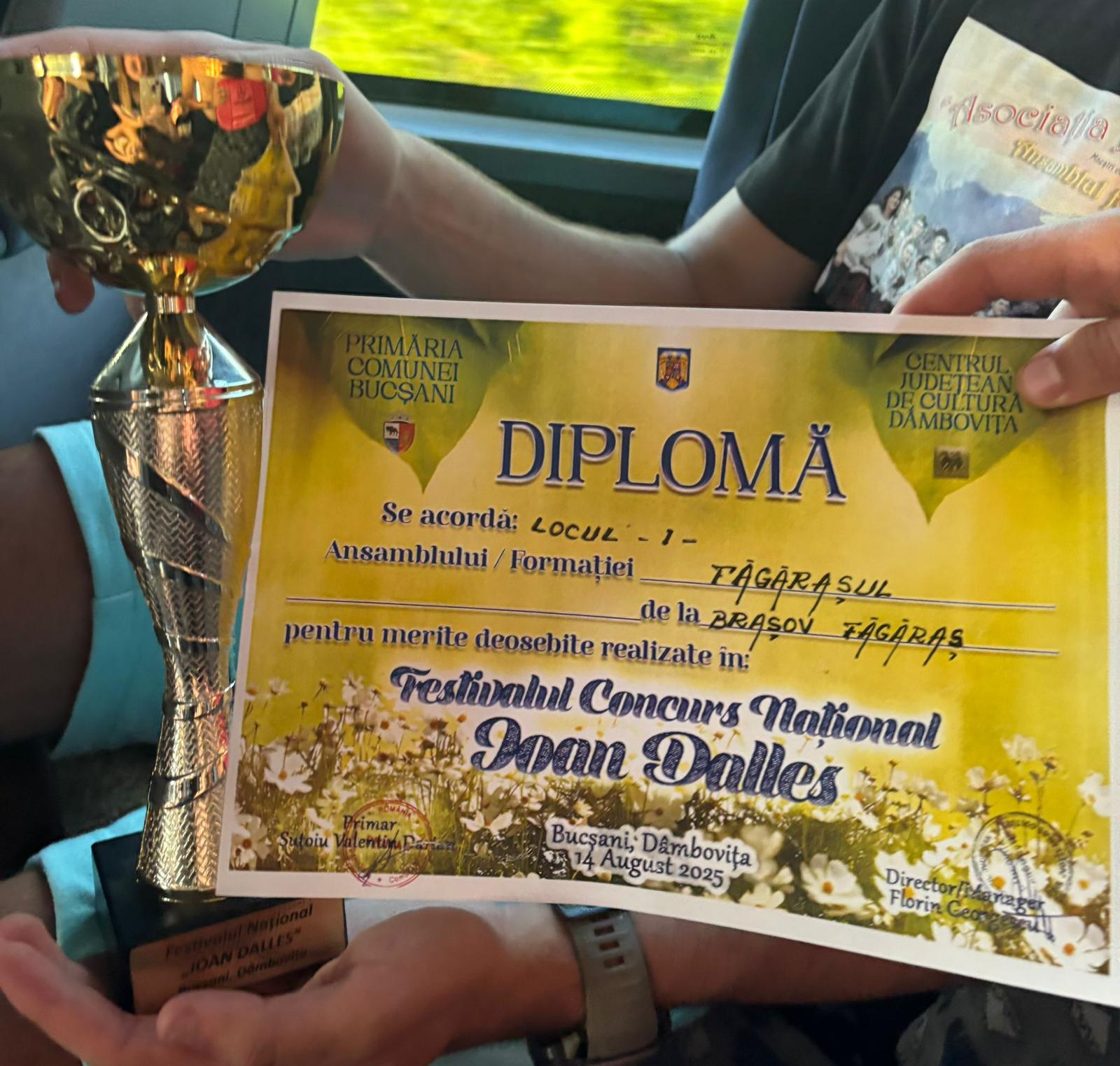 Când au intrat pe scenă artiștii de la Ansamblul de dansuri ,,Făgărașul“ au impresionat juriul și audiența de la Fetivalul- concurs ,,Ioan Dalles“. Evenimentul s-a desfășurat joi, 14 august a.c., la Bucșani din județul Dâmbovița. S-au înscris la concurs echipe și ansambluri de dansuri populare din toate județele din România, iar concursul s-a desfășurat pe grupe de vârstă. Ansamblul de dansuri ,,Făgărașul“ a prezentat, în minutele rezervate prin regulamentul de concurs, două dansuri specifice Țării Făgărașului, ,,Dans de Făgăraș“ și ,,Brâul de Făgăraș“. Cei 30 de tineri artiști făgărășeni au impresionat prin ținută, prin frumosul port popular făgărășean, dar mai ales prin modul în care au adus pe scenă jocul vechi din Țara Făgărașului, un joc autentic fără cosmetizări moderne. Instructorul Ioan Ionuț este cel care a insuflat tinerilor artiști originalitatea dansurilor făgărășene, iar Anca Ionuț a preluat ștafeta în același mod. Juriul forrmat din Gheorghe Văduva- maestrul-coregraf zona Muntenia, Ilie Dumitru- maestrul-coregraf, Traian Șetreanu- profesor coregraf, Ionel Garoafă- profesionist ,,Maria Tănase“ din Vraiova și Nea Mărin, președintele juriului, a decis la finalul concursului ca Marele Premiu să fie acordat Ansamblului ,,Făgărașul“ pentru evoluția pe scenă, frumusețea dansului popular tradițional și păstrarea și ducerea mai departe a tradițiilor locale. De asemenea, tinerii artiști de la ,,Făgărașul“, categoria 15-18 ani, au fost recompensați și cu locul I.