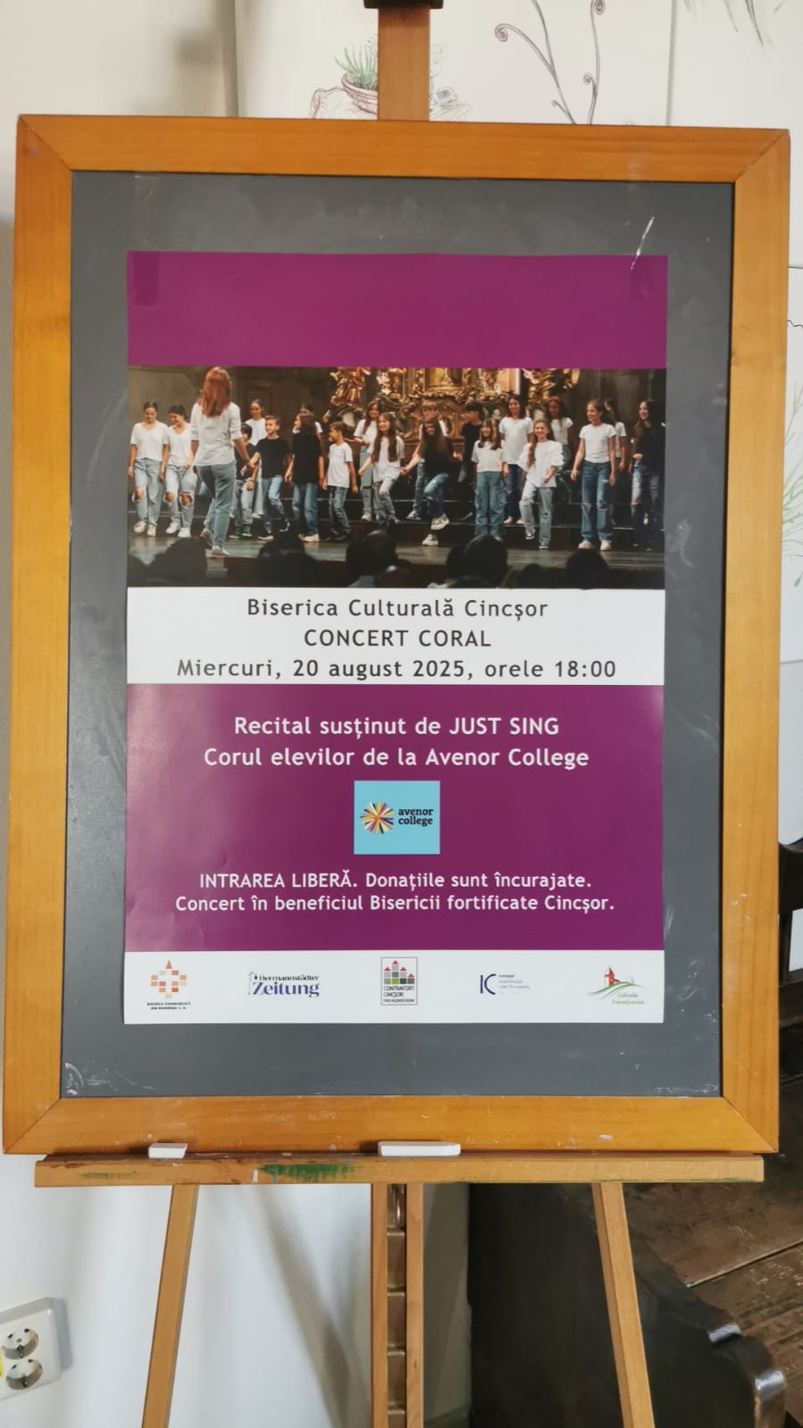 Concert la Biserica culturală Cincșor: Corul elevilor de la Avenor College și recital Just Sing miercuri, ora 18.00. Intrarea liberă