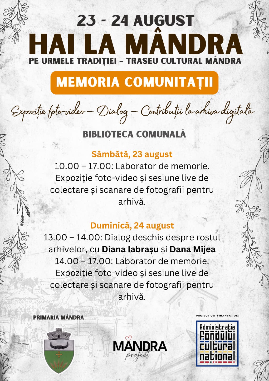 Eveniment cultural ,,Hai la Mândra- pe urmele tradiției“, 23-24 august. Programul pe secțiuni și zile monitorfg.ro 5 luni ago