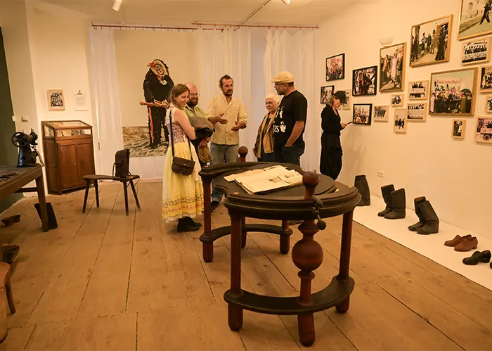 În inima Transilvaniei, satul Cincu păstrează o istorie stratificată, unde cultura materială se împletește cu ritualul și identitatea comunitară. Expoziția Urme care ne poartă / Traces That Lead Us reunește unelte, tradiții și gesturi contemporane, explorând modul în care meșteșugul devine purtător al memoriei și limbaj al rezilienței. Traseul său urmează urmele sculptate de mâini, timp și ritual – prin cusături, pantofi, măști și obiecte ce poartă atât greutatea, cât și miracolul succesiunii generațiilor. Punctul de plecare este moștenirea tradiției performative Urzeln / Fuga Lolelor, reflectată atât în tehnici meșteșugărești istorice, cât și în reinterpretări contemporane – gesturi, obiecte, artefacte. Această tradiție este ancorată în patrimoniul bogat al satului: o procesiune ritualică, cu rădăcini în breslele meșteșugărești săsești, unde personajele mascate – Lolele – oscilează între păgân și carnavalesc, alungând răul și simbolizând reînnoirea comunitară. Dincolo de funcția lor festivă, Lolele aveau și un rol de paznici ai ritualurilor de breaslă, protejând granițele simbolice și materiale – de la unelte și secrete ale meseriei până la coeziunea comunității. Narațiunea expoziției pornește de la colecția permanentă în formare a muzeului: documentarea fotografică a ritualului realizată de Vlad Dumitru, Magdalena Menzinger, Sharon Schuster, Georgiana Vlahbei și Pascual + Vincent (2017–2024), precum și reproduceri ale unor fotografii istorice (1920–1990).