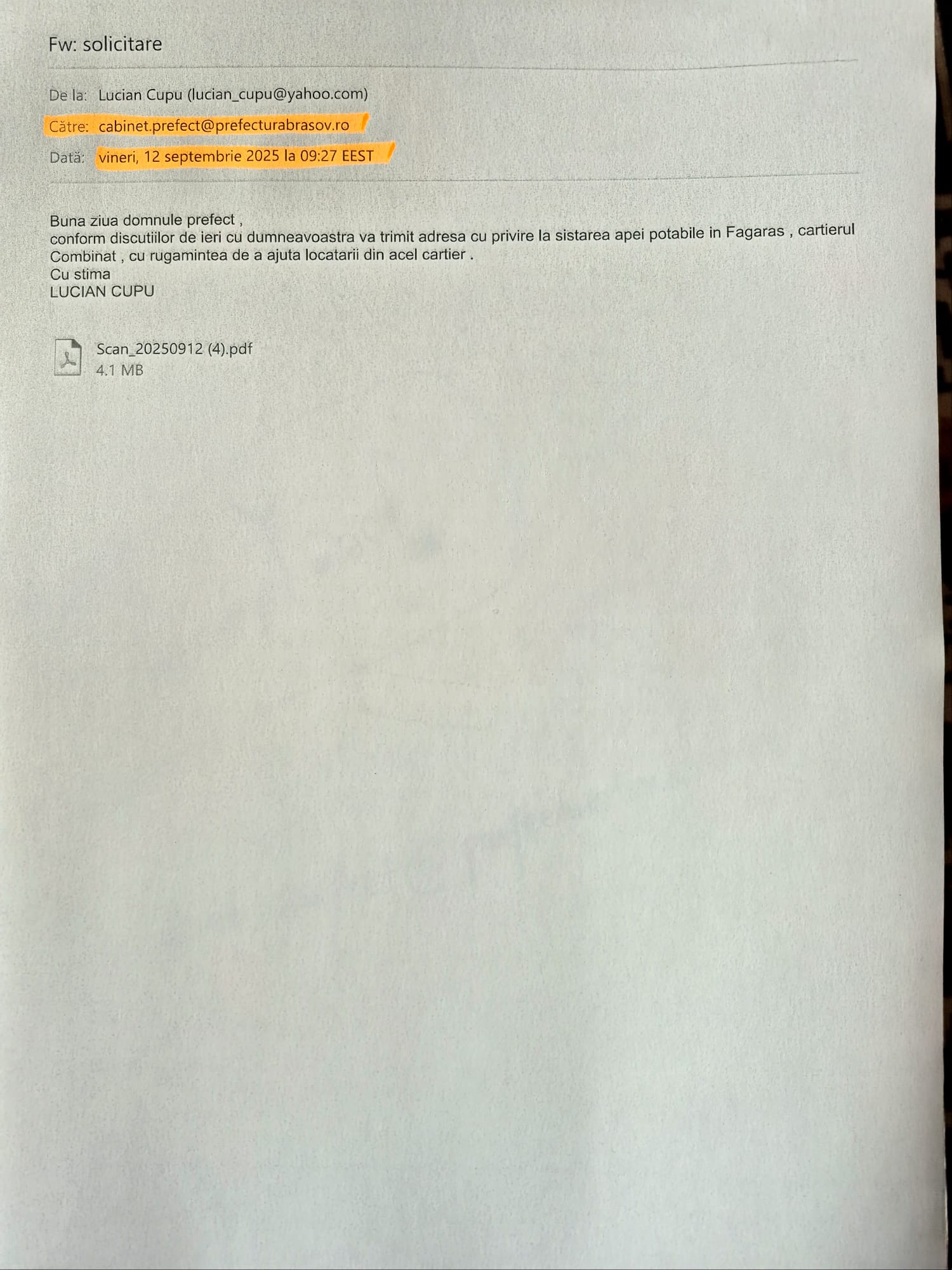 Oamenii au trimis petiții la Primăria Făgăraș, la Apa Canal Sibiu, la Poliție, la Parchetul Făgăraș. S-au adresat și Prefectului de Brașov, Mihai Văsii, cu un memoriu. Consilierul local Lucian Cupu a remis la rându-i un memoriu la Prefectura Brașov, cerându-i prefectului să ia măsuri pentru a se evita izbucnirea unui focar de infecție în zonă din cauza lipsei apei curente. Primăria Făgăraș nu a răspuns locatarilor deși are un compartiment care se ocupă de controlul asociaților de proprietari. Conducerea de la Apa Canal Sibiu a dat un răspuns.