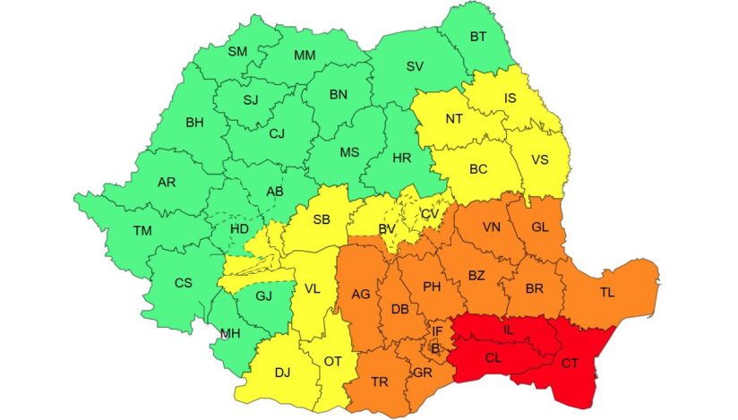 AVERTIZARE METEOROLOGICĂ pentru următoarele două zile. Cod galben în Transilvania și Cod roșu în Dobrogea