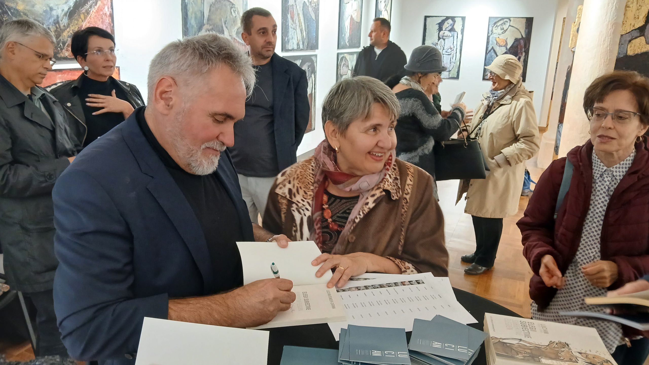 Lucian Binder-Catana  a oferit celor prezenți la vernisaj cartea sa „Elegii subiective” apărută în anul 2024 la Editura A.T.U. Sibiu, redactată în limbile română și germană.   „ Ideea acestei cărți nu s-a născut din îngâmfare, ci din recunoștință. Nu am și nu am avut niciodată pretenții publicistice, dar am simțit acest moment ca pe unul necesar, în a duce cele două dimensiuni culturale, poezia și arta, care mi-au marcat întreaga biografie, într-un loc comun, firesc, și integral. Ideea este simplă și caracteristică umanului comun. Un fel de indice biografic, o linie pe care încercăm să o tragem, contabilizându-ne existența, căutând sensul ei, explicând derapajele, spaimele, drumurile înfundate sau orizonturile deschise“. Expoziția  va rămâne deschisă până la 2 noiembrie 2025. (Ion Talpoș)
