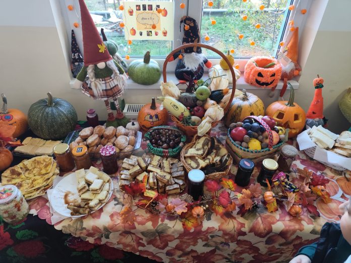 Foto. Sărbătoarea toamnei la Școala Gimnazială Sâmbăta de Sus. Holul școlii s-a transformat într-un adevărat târg al belșugului