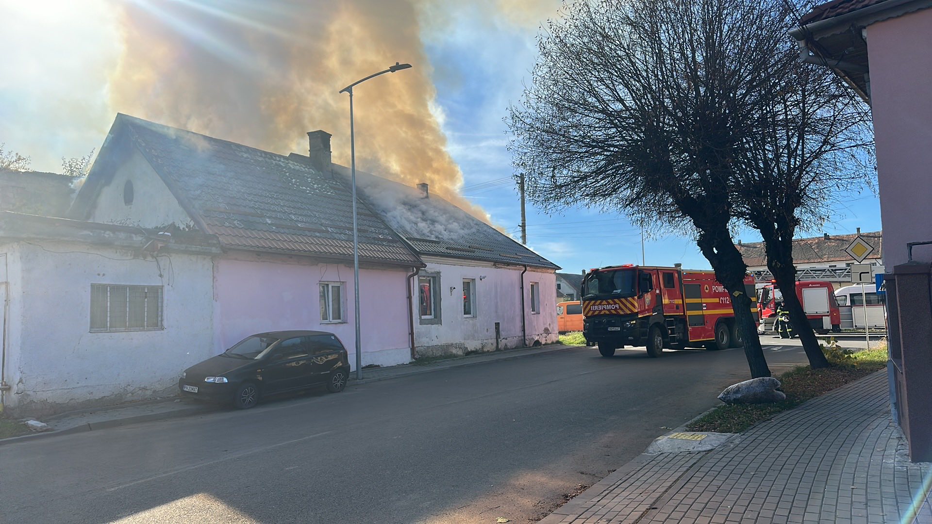Un incendiu a fost semnalat la o casă de pe strada Andrei Mureșanu din Făgăraș. La fața locului au ajuns pompierii de la Detașamentului de Pompieri Făgăraș, respectiv 3 autospeciale de stingere cu apă și spumă, o autospeciala de salvare de la înălțime și o ambulanță SMURD tip B2, dar și o autospecială de lucru cu apă și spumă de la Secția de Pompieri Victoria. Pompierii spun că nu sunt victime, flăcările se manifestă pe o suprafață de 300 mp.