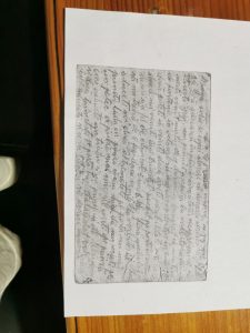 ,,Dragă soţie şi copii doresc ca această scrisoare să vă găsească în plină sănătate. Despre mine să nu aveţi  grijă am primit pachetu. La vorbitorul din  septembrie  nu aţi venit,  nu ştiu de ce  dar m- a bucurat  că  mi a ti zis de Partenie . În octombrie am iar vorbitor în ziua de 16, dacă putei să veniţi, dacă aveţi posibilitate, dacă nu veniţi îmi trimiteţi pachet pe poştă în octombrie lucruri şi  alimente 5 sau 6 kg, fără ambalaj  să nu treacă de 8 kg. Dacă veniţi  la vorbitor  îl aduceţi  voi,  dacă îl trimiteţi  pe poştă  nu mai  puneţi lada în pânză că nu  vine sau scrieţi  pe un petic de pânză mai mic şi îl coaseţi pe pânză.  Îmi aduceţi un tricău şi un prosop  şi aţă  albă de cusut. Şi dacă trimiteţi pe poştă, separat  la vorbitor îmi aduceţi şi ceva bocanci. Vă doresc sănătate. Trimiteţi un răspuns la c.p.