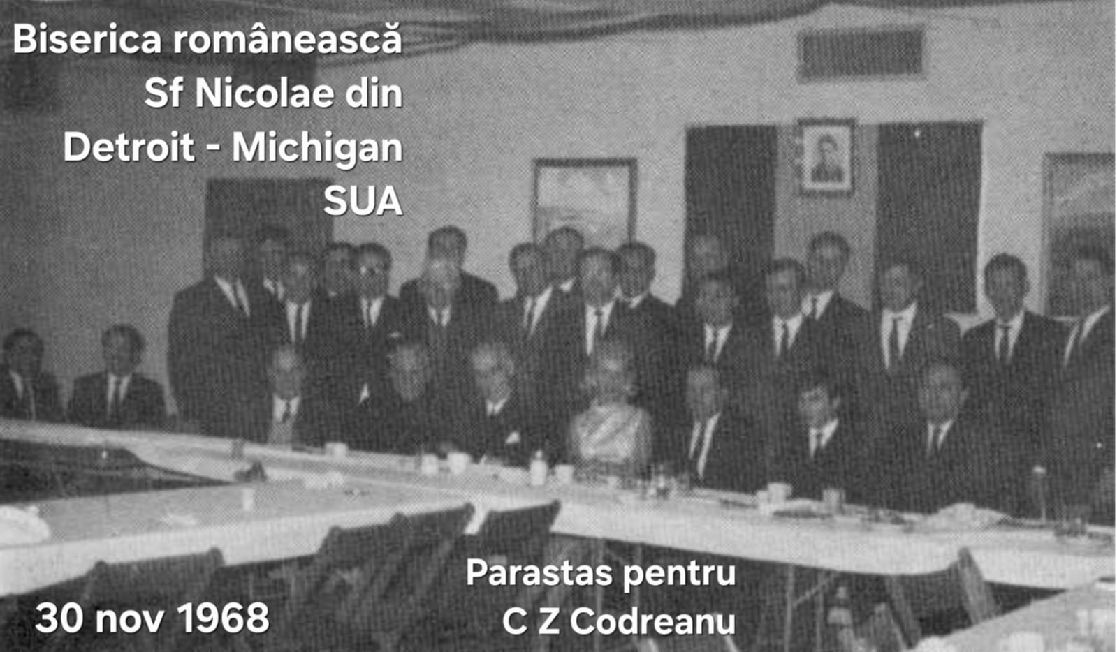 Am început însă cu trei fotografii din 1968, din Statele Unite ale Americii, considerându-le relevante pentru modul firesc în care percepeau acest gen de comemorări românii care, înainte de 1989, trăiseră în Occident, atât în SUA, cât și în țările vest-europene, unde aceste manifestări erau considerate ceva firesc atât în comunitățile de români, cât și de către autoritățile statelor respective. Imaginile de față sunt din Detroit (statul Michigan) de la comemorarea lui Corneliu Zelea Codreanu ținută la biserica românească, cu hramul Sf. Nicolae, în ziua de 30 noiembrie 1968 (se împlineau 30 ani de la asasinarea liderului Mișcării Legionare). Foto-documentele le consider relevante pentru că, în anii de după 1990, mulți exilați se repatriaseră, aducând cu ei mentalitățile formate în Occidentul liber.