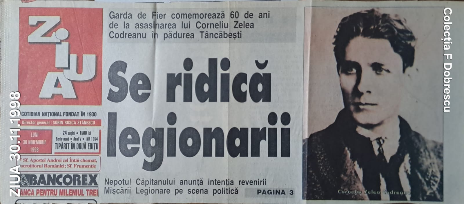 Continui seria despre Tâncăbești, pe marginea unei represiuni politico-mediatice cu implicații judiciare, publicând materiale legate de comemorările desfășurate anual, din 1994 încoace, la Tâncăbești, pe locul unde Corneliu Zelea Codreanu și alți 14 fruntași legionari au fost asasinați în noaptea de 29-30 noiembrie 1938.