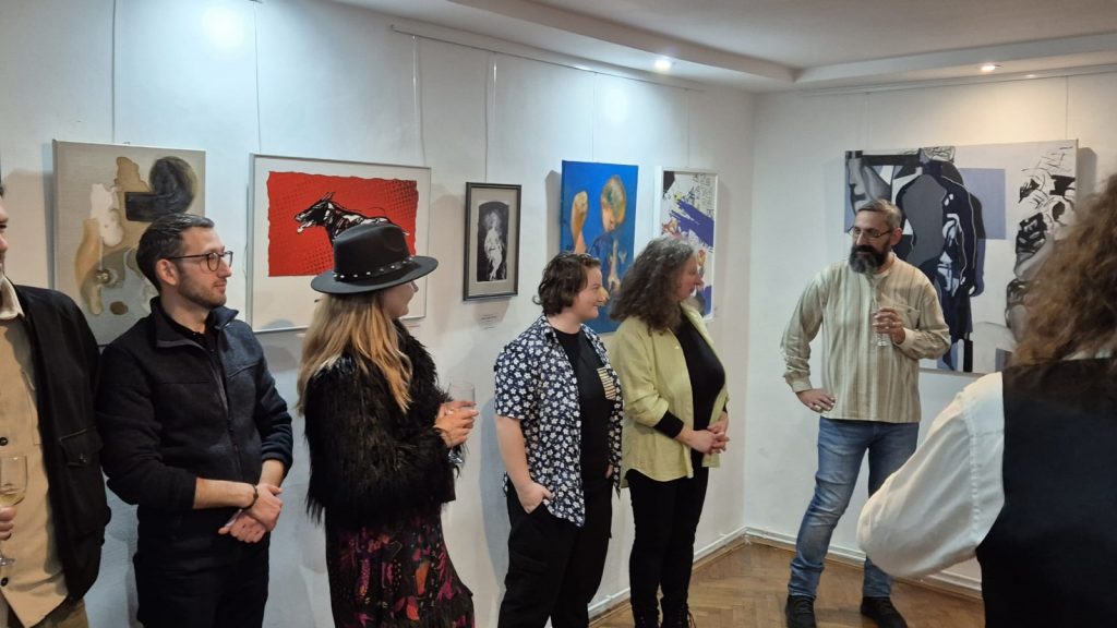 V.C.: Trebuie să recunosc că nu mă așteptam la o asemenea prezență la vernisaj. Pe de altă parte, am fost puțin dezamăgită, pentru că mai multe persoane pe care le așteptam să participe, nu au venit. Printre artiștii care au expus au venit și câțiva artiști din Hunedoara, cărora eu le-am pus pensula în mână, cu ani în urmă, când am locuit și am activat la Hunedoara. Am avut acolo un hub artistic și câțiva participanți pe care i-am format și i-am încurajat să continue, sunt astăzi artiști consacrați și ni s-au alăturat cu lucrări în această expoziție. Alături de invitații noștri speciali, la evenimentul nostru ne bucurăm de prezența artiștilor Alexandru Banu, Ionela Balogh, Cristian Bârzoies, Xenia Botea, Andreea Busuioc, Mimi Cardoș, Alexandra Cârdei, Roxana Coatu, Laura Cornea, Constanța Crețu, Valentina Cristea, Anca Costea, Nagy Deborah, Ioana Devolescu, Felicia Drăghici, Iuliu Duma, Claudia Frol, Victoria Ghilas, Raluca Glodean, Magda Ienci, Sanda Ionescu, Violeta Iorgoaia, Edwina Kasler, Maria Manea, Delia Viviana Mălinaș, Mihaela Mureșan, Raluca Oros, Alma Laura Parasca, Georgiiana Petrulianu, Ana Platon, Mircea Rusu, Emanuela Mădălina Tămaș, Andrei Teodorescu, Gabriel Tibori, Beatrice Ana Ungureanu, Nelly Vass, Elisabeta Vasvari. Curatoria evenimentului nostru a fost semnată de dr. Daniela Maria Bădilă, care a construit un fir narativ ce transformă fiecare lucrare într-un pas pe traseul „contrasens” – acolo unde arta provoacă, întreabă și respirăaltfel.