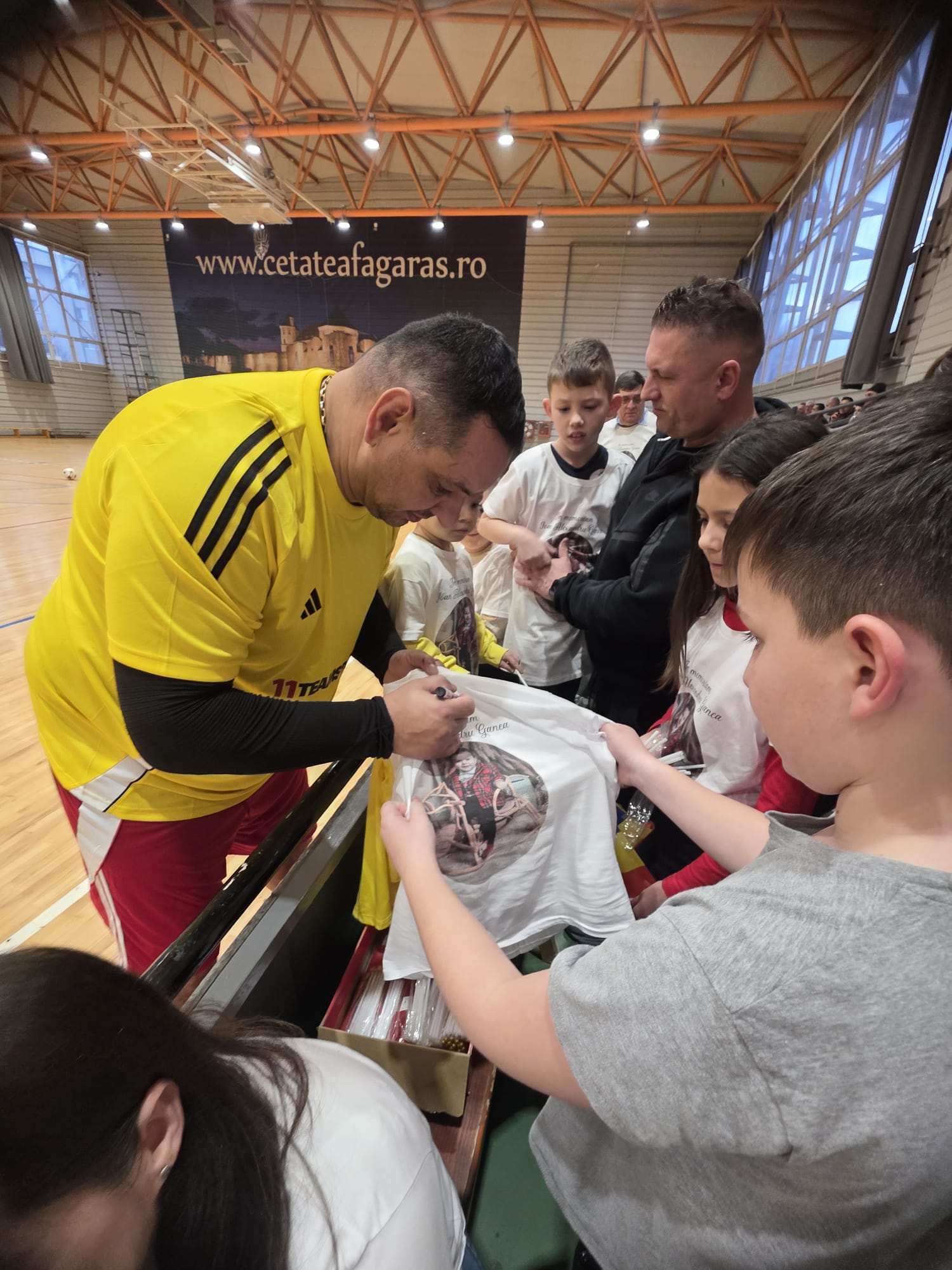O atmosferă specială a fost creată la ,,Memorialul Ioan Alexandru Ganea“, eveniment sportiv organizat de Ionel Ganea, în memoria  fiului său.  A fost prima ediție a Memorialului, dar și prima dată când ,,Ganezu“, așa cum îl știu iubitorii sportului rege, a zâmbit după șase luni de la accidentul nedorit, care i-a răpit cea mai dragă ființă, pe Alexandru, la doar 2 anișori. Sala de sport a CN ,,Radu Negru“ din Făgăraș a fost arhiplină vineri, 12 decembrie a.c., începând cu ora 16.00. Mmai ales copiii, tânăra generație, au ținut să fie prezenți la evenimentul care amintea de micuțul Alexandru. Ionel Ganea a fost înconjurat de copii, care i-au cerut autografe pe diverse obiecte, tricolor, tricouri imprimate cu chipul fiului său. I-au smuls copii și câte un zâmbet înconjurat fiind de spontaneitatea și drăgălășenia lor sinceră.