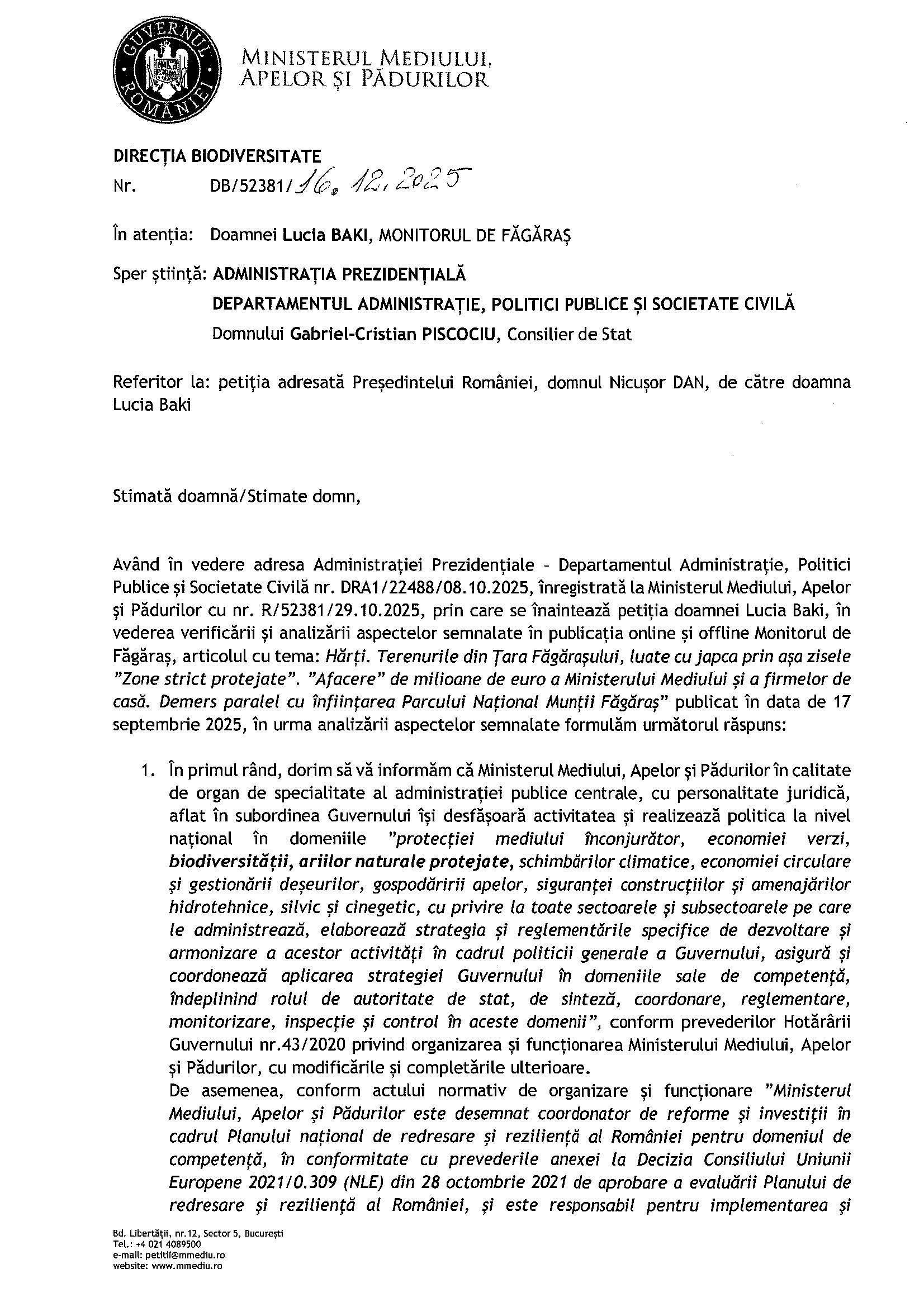 Răspunsul Ministerului și Președinției pentru Monitorul de Făgăraș