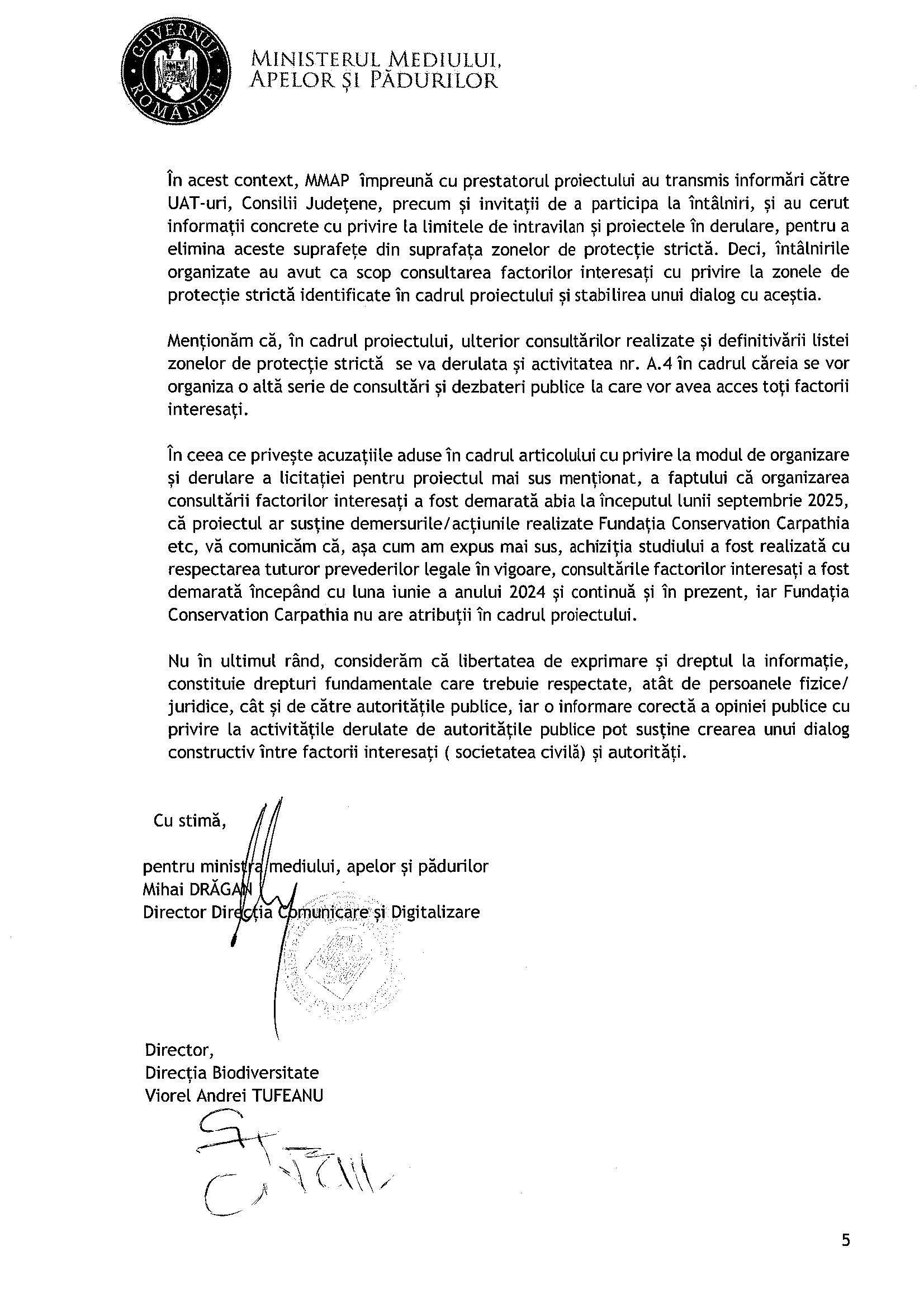 Ce nu mai știau proprietarii de terenuri, primării, composesorate, persoane fizice, persoane juridice, ocoale silvice, era faptul că acest proiect a fost asumat de România în fața UE prin Programul de Redresare și Reziliență, cel negociat de USR prin Cristian Ghinea cu Uniunea Europeană, și anume ,,Punerea sub protecție strictă a cel puțin o treime din zonele protejate ale UE (10% din suprafața terestă și 10% din suprafața marină) inclusiv a tuturor pădurilor primare și seculare“. Astfel de păduri seculare, virgine, se găsesc doar în România. Și dacă ținem cont de concluzia desprinsă din proiectul ,,S.U.P.E.R.B. – Systemic solutions for upscaling of urgent ecosystem restoration“, finanţat de Comisia Europeană prin programul HORIZON 2020, implementat în România, de cine altcineva decât Fundația Conservation Carpathia (FCC), ,,solurile forestiere din România stochează mai mult carbon decât cele din unele ţări vest-europene, un indicator al valorii și naturalității pădurilor locale. Avem, în ţara noastră, păduri naturale valoroase, cu o evoluţie istorică natural evolutivă în comparaţie cu alte zone mai antropizate ale continentului european” publica FCC.