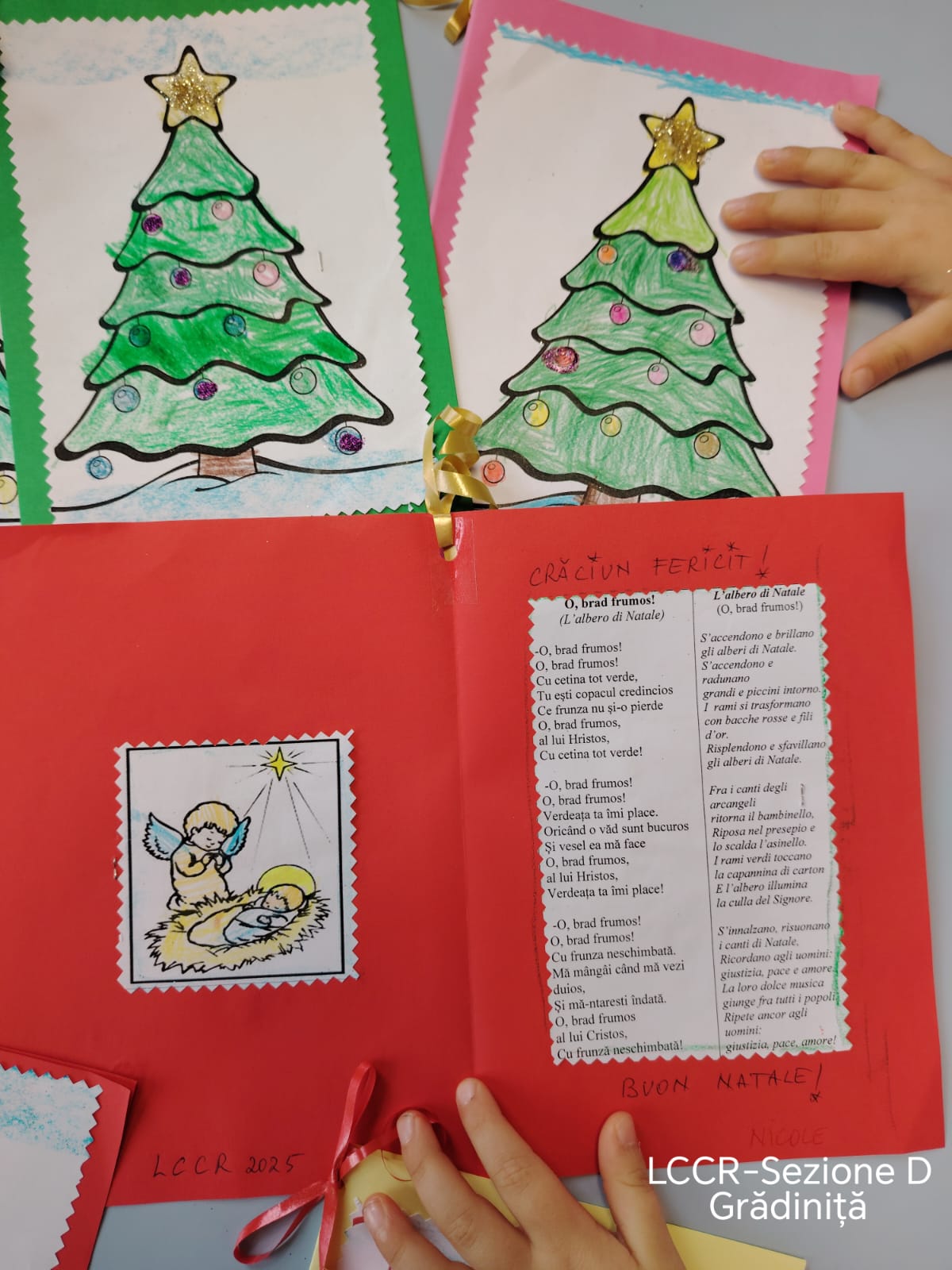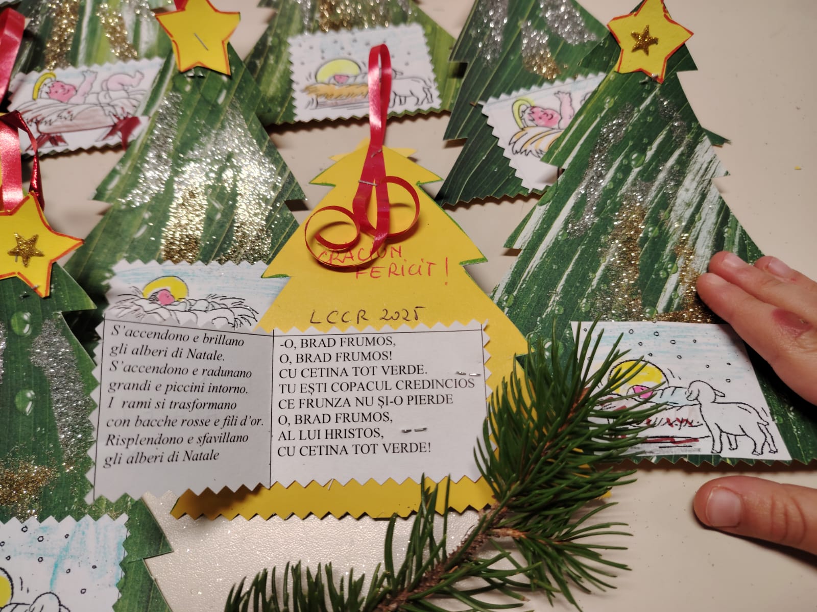 •  ,,Răsună colinde românești în școlile de la porțile Romei. Elevii de la cursul de limbă, cultură și civilizație românească colindă în aceste zile prin școlile lor din Ladispoli, Civitavecchia și Roma. Cum e datina străbună, prin glasurile lor, aduc bucurie părinților și bunicilor pe care îi colidă și le spun poezii de Crăciun. La fiecare școală, cu fiecare copil, organizați în grupuri mici sau mai mari, s-au pregătit colinde, poezii și felicitări cu desene, colaje, versuri de Crăciun și  pe care le dăruiesc cu mândrie părinților, dascălilor, prietenilor“ spune Angela Nicoară, profesoara elevilor de la cursul LCCR.