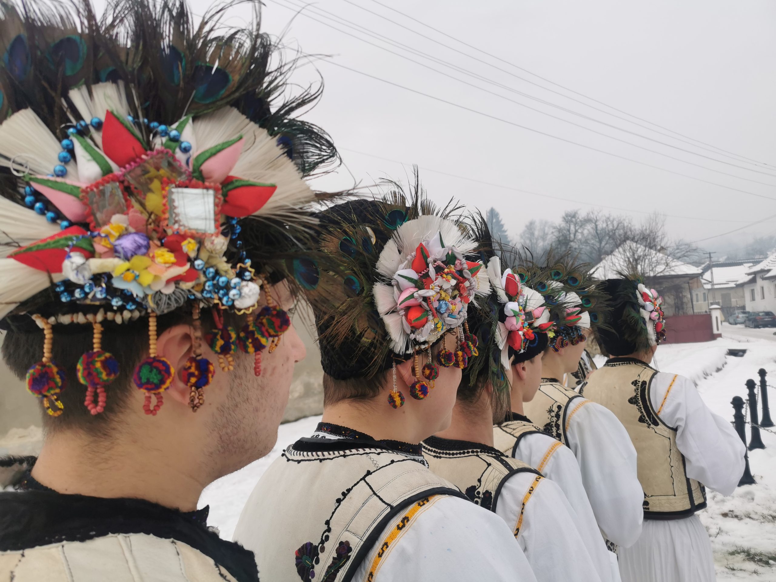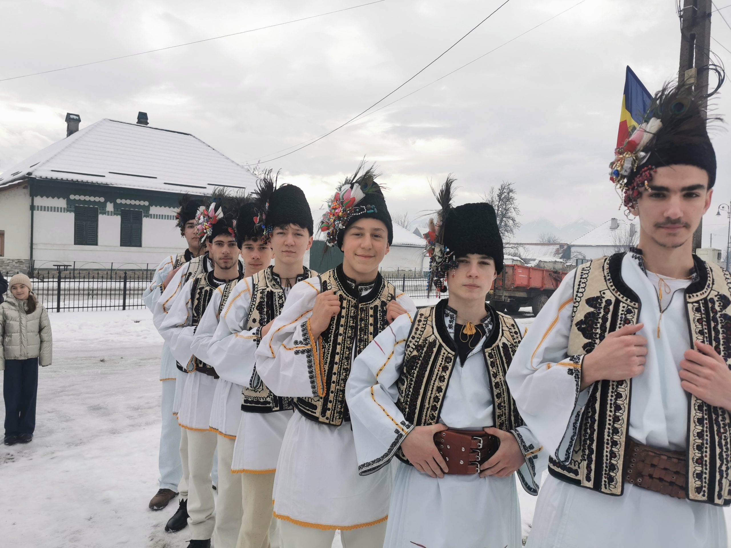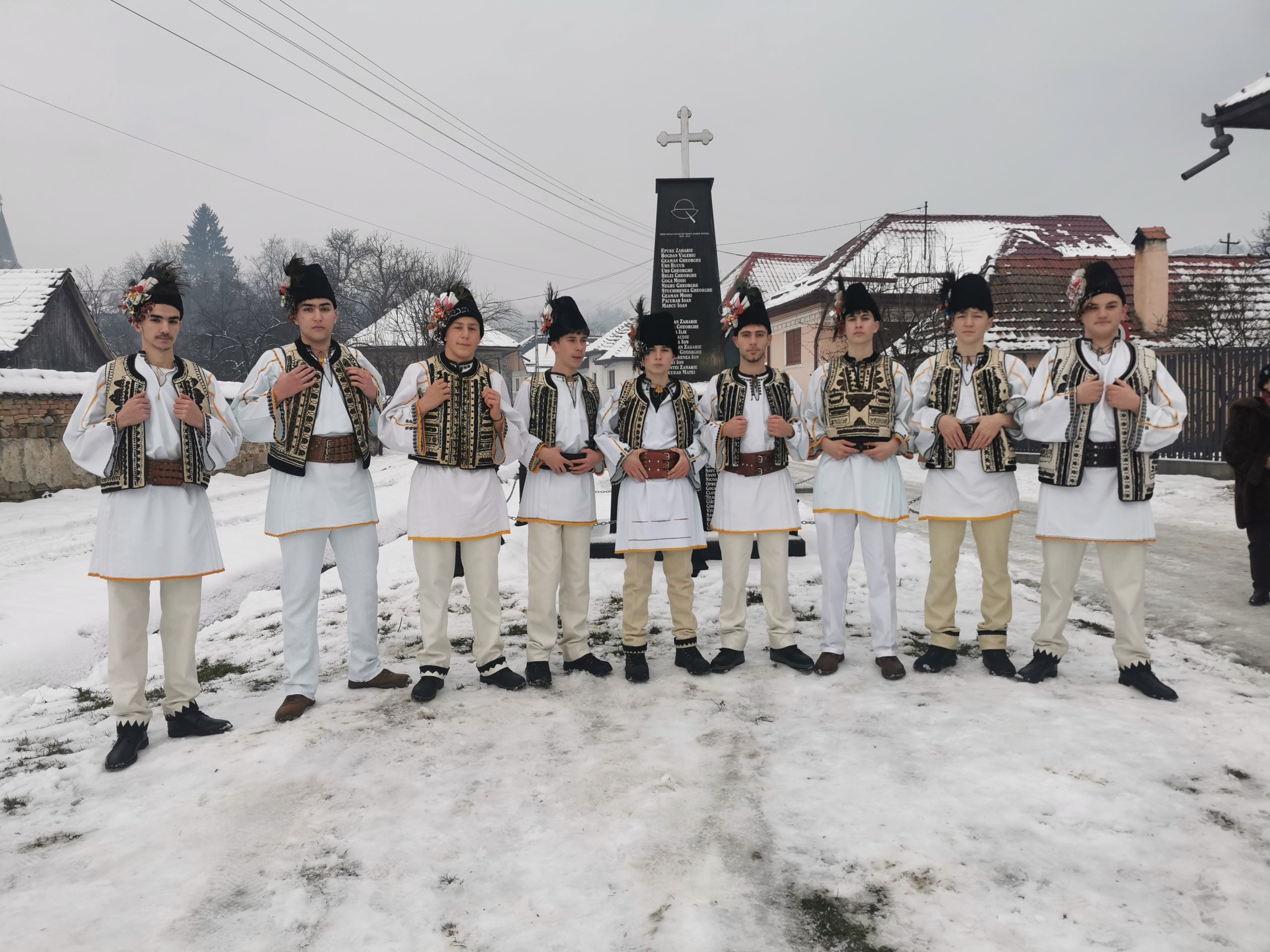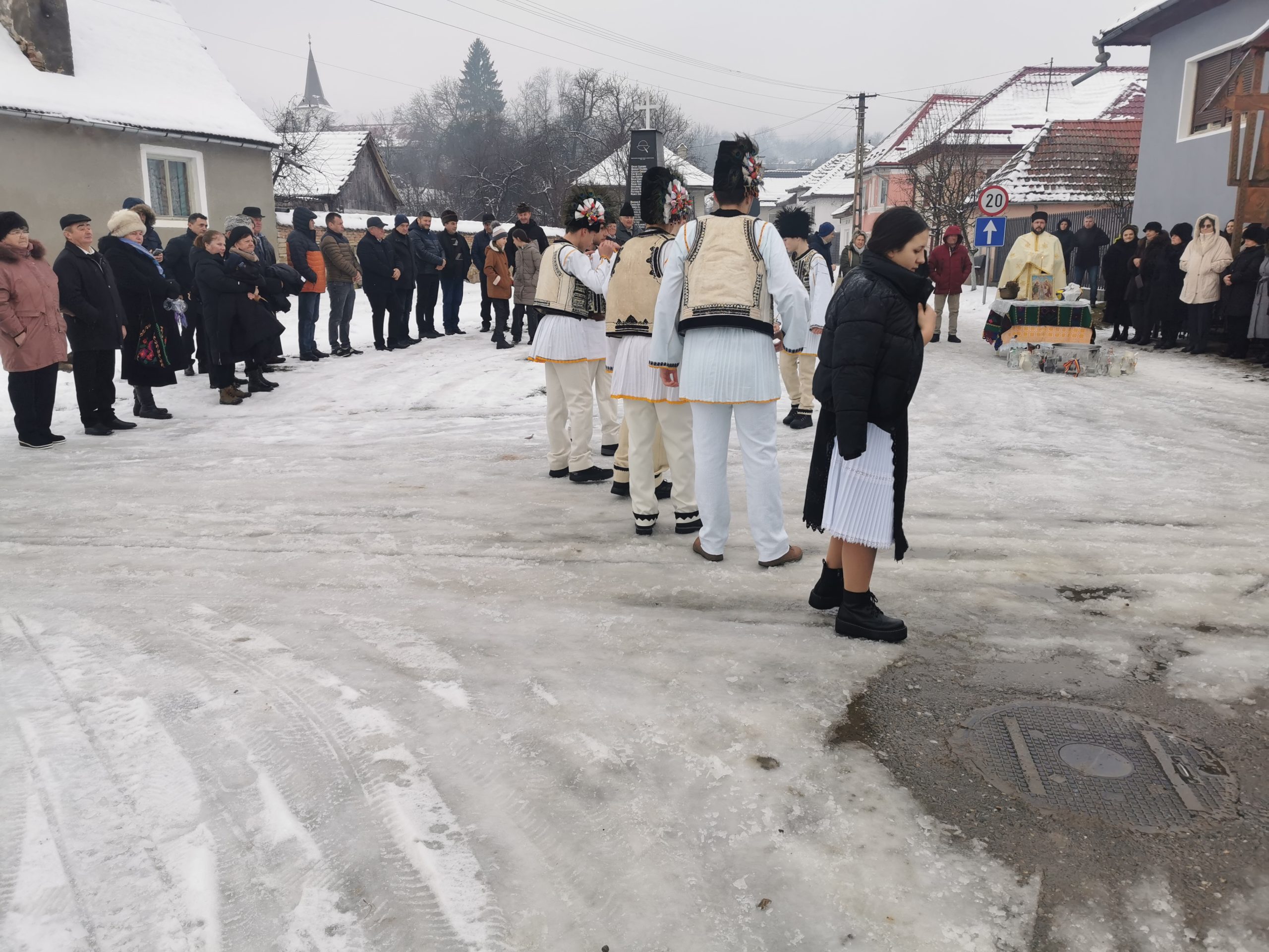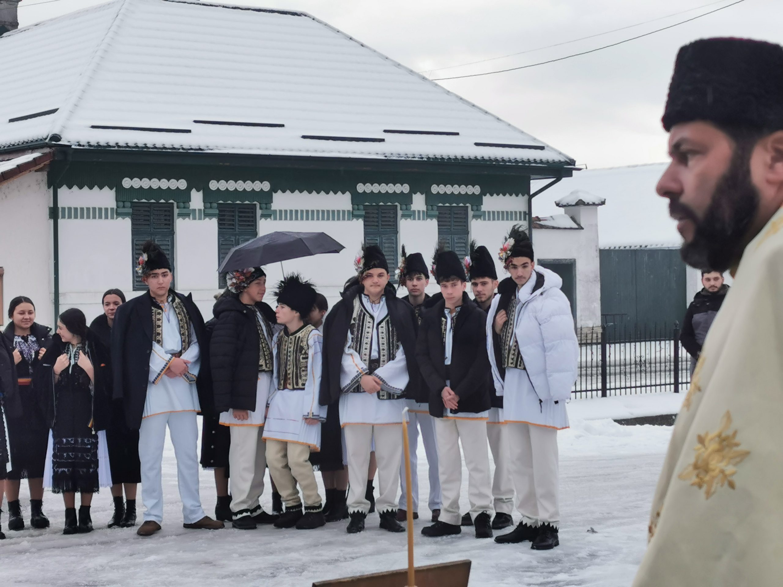 Foto și Video. Boboteaza, la Rucăr: sfințirea apei și jocul Cetei de feciori. O frumoasă paradă a portului popular