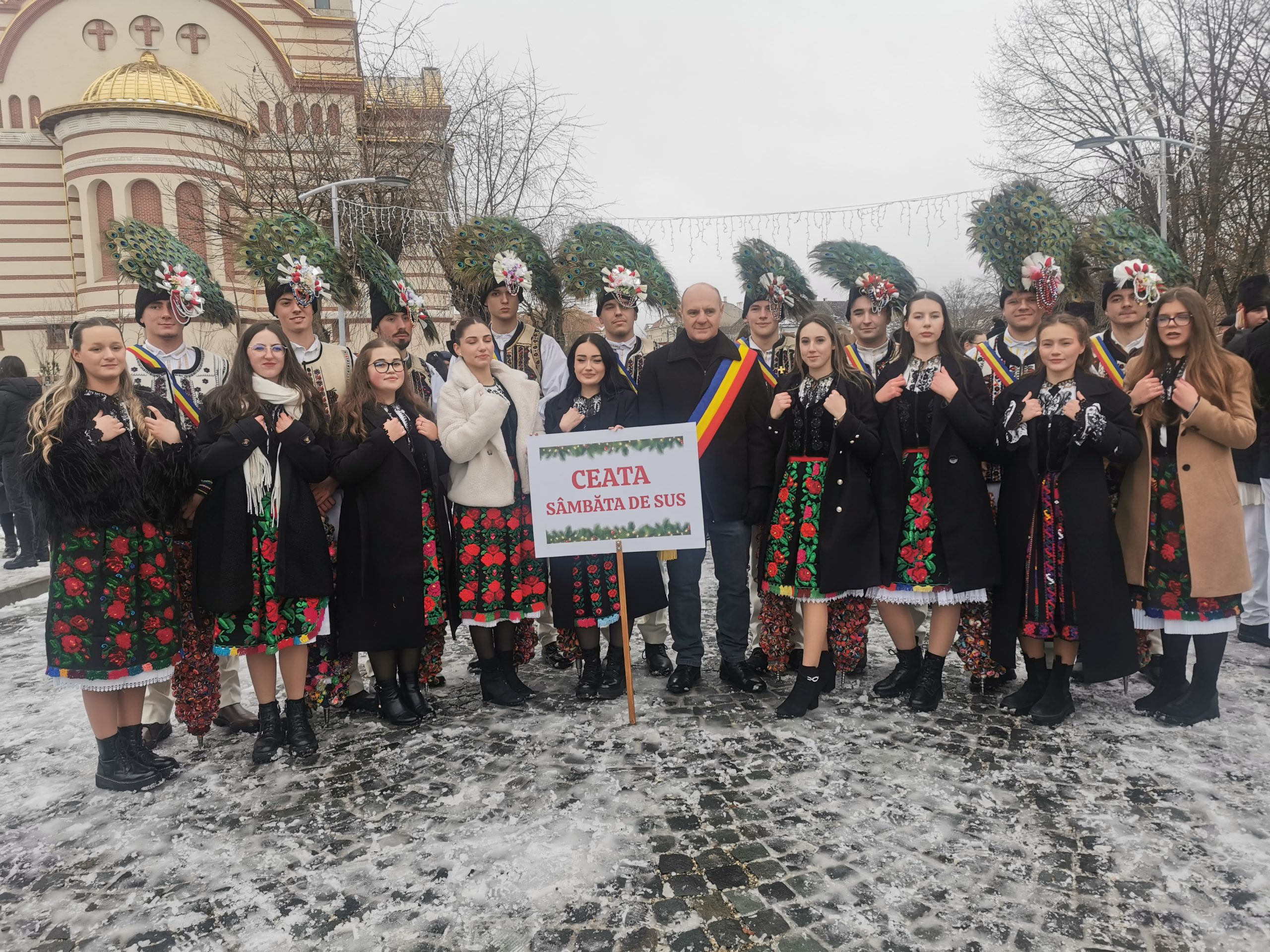 - ,,Portul nostru național este format din: cămașă țesută în război, pieptar, șerpar, pantaloni albi. La mâini, peste cămașă, avem mânecuțe colorate. Vâstra se confecționează cu pene de păun și de rândunică, vreo 130-150 de pene. Vâstrulița are mărgelele adăugate de fata cu care face cetașul joc. Mai avem bățul care este împodobit cu ciucuri, 500-1000 de ciucuri“ explică vătaful Cetei de feciori din Sâmbăta de Sus.
