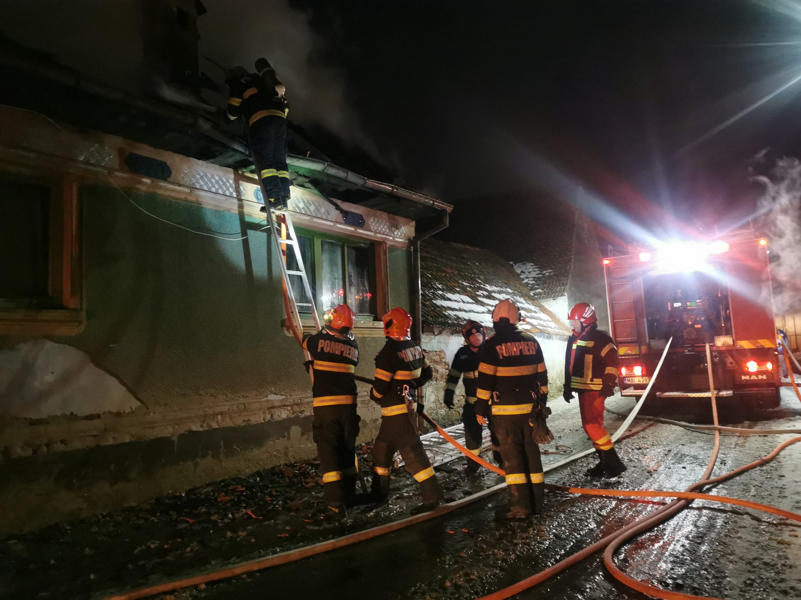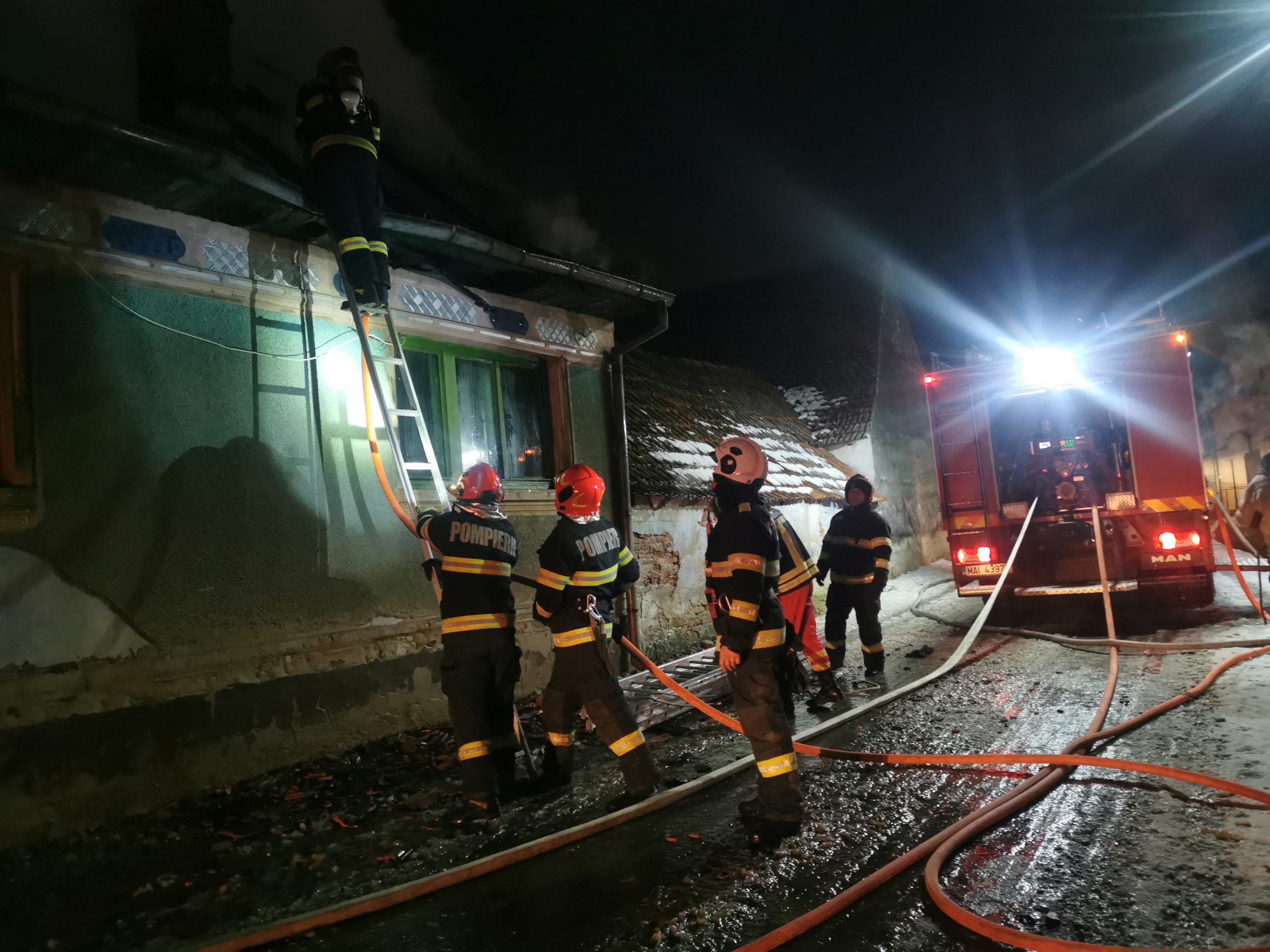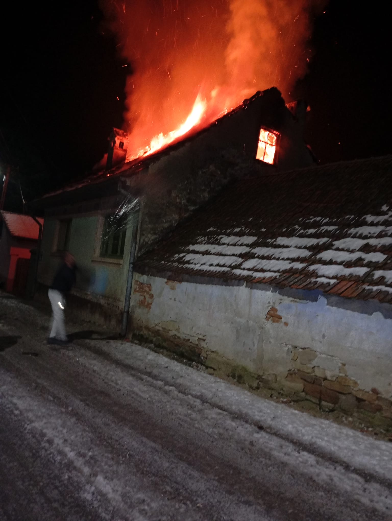 Un incendiu de proporții a izbucnit la o casă din localitatea Rucăr, comuna Viștea, în seara de marți, 20 ianuarie a.c., în jurul orei 19.50. Printr-un apel la 112 au fost anunțați pompierii care au sosit la fața locului în scurt timp. Incendiul se manifesta pe întreg acoperișul casei cu flacără deschisă. Patru autospeciale ale ISU de la Detașamentul Făgăraș și Formația Victoria au acționat pentru stingerea flăcărilor.  De la acoperiș flăcările s-au extins și în interiorul casei cu nr. 162. Proprietarul a reușit să iasă din casă la timp, anunțat fiind de un vecin. Nu se știe cauza care a dus la izbucnirea focului. ,,Mi-a bătut în geam un vecin să ies afară. Flăcările cuprinseră acoperișul. Nu am ce să mai fac. Voi locui în camerele amenajate în curte că nu s-a întins focul și la ele. Pagubă totală“ a spus șocat proprietarul.