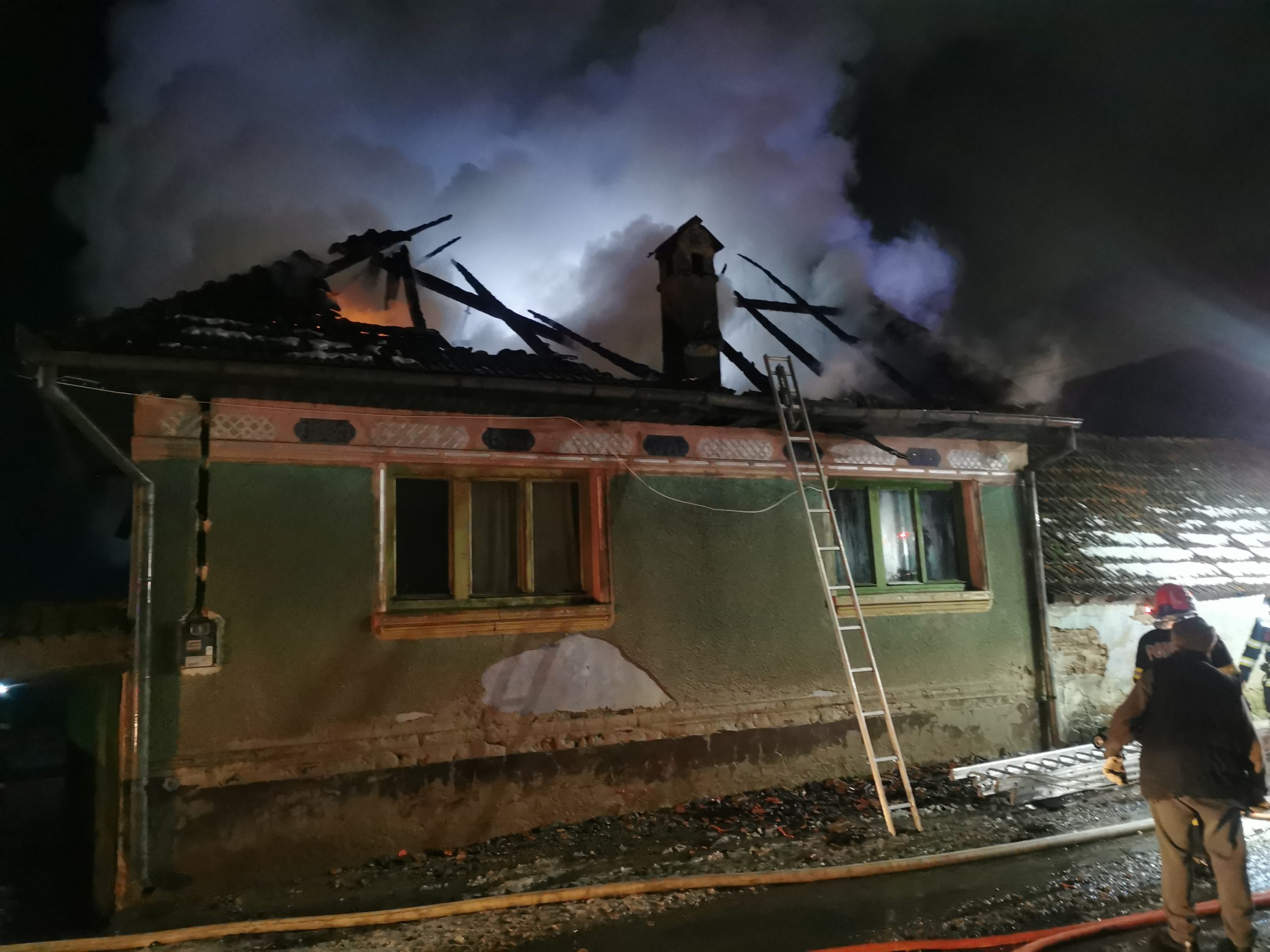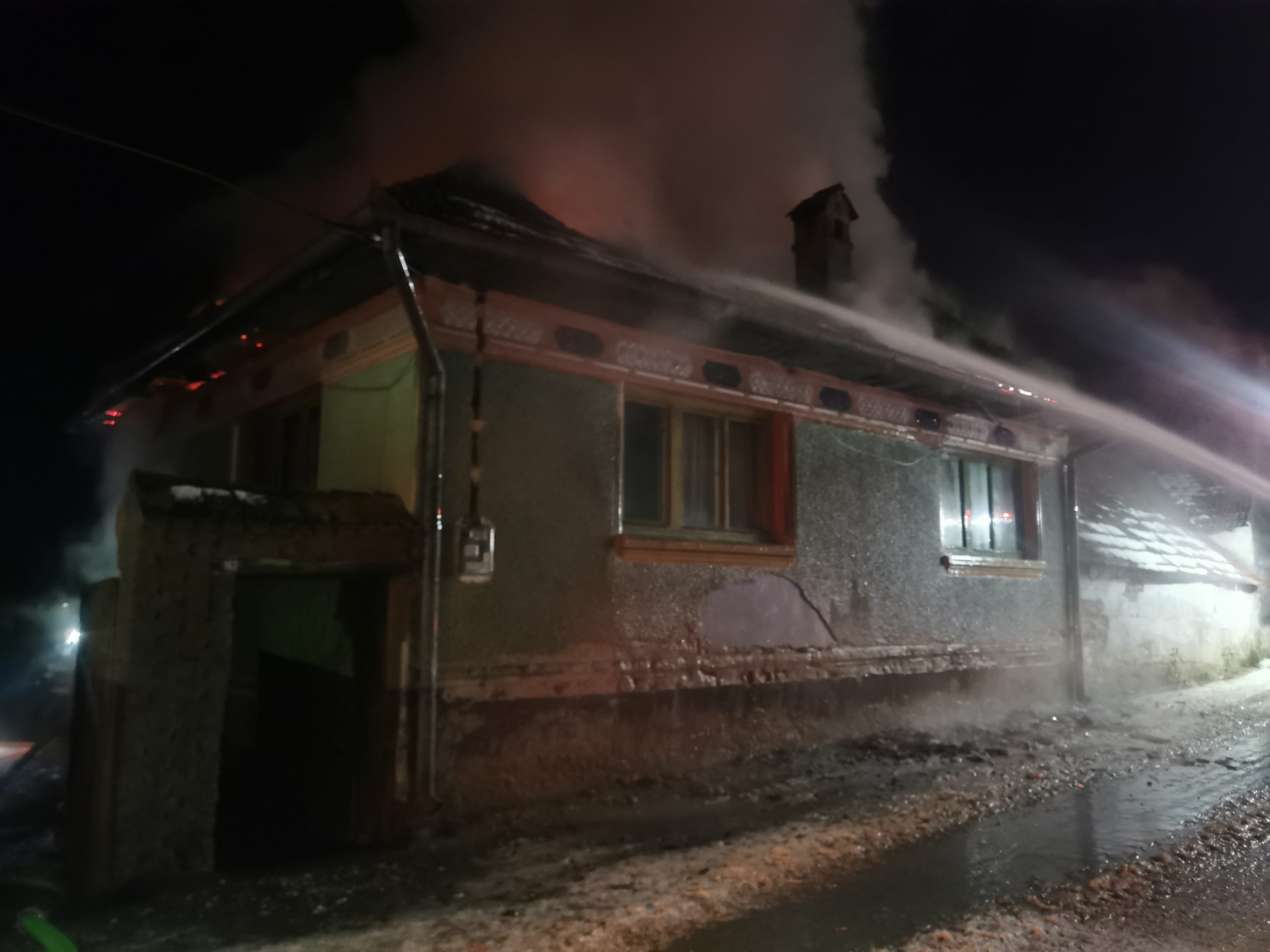 Video și Foto. O casă din Rucăr a luat foc. Incendiu s-a manifestat cu flacără deschisă. Paguba este totală