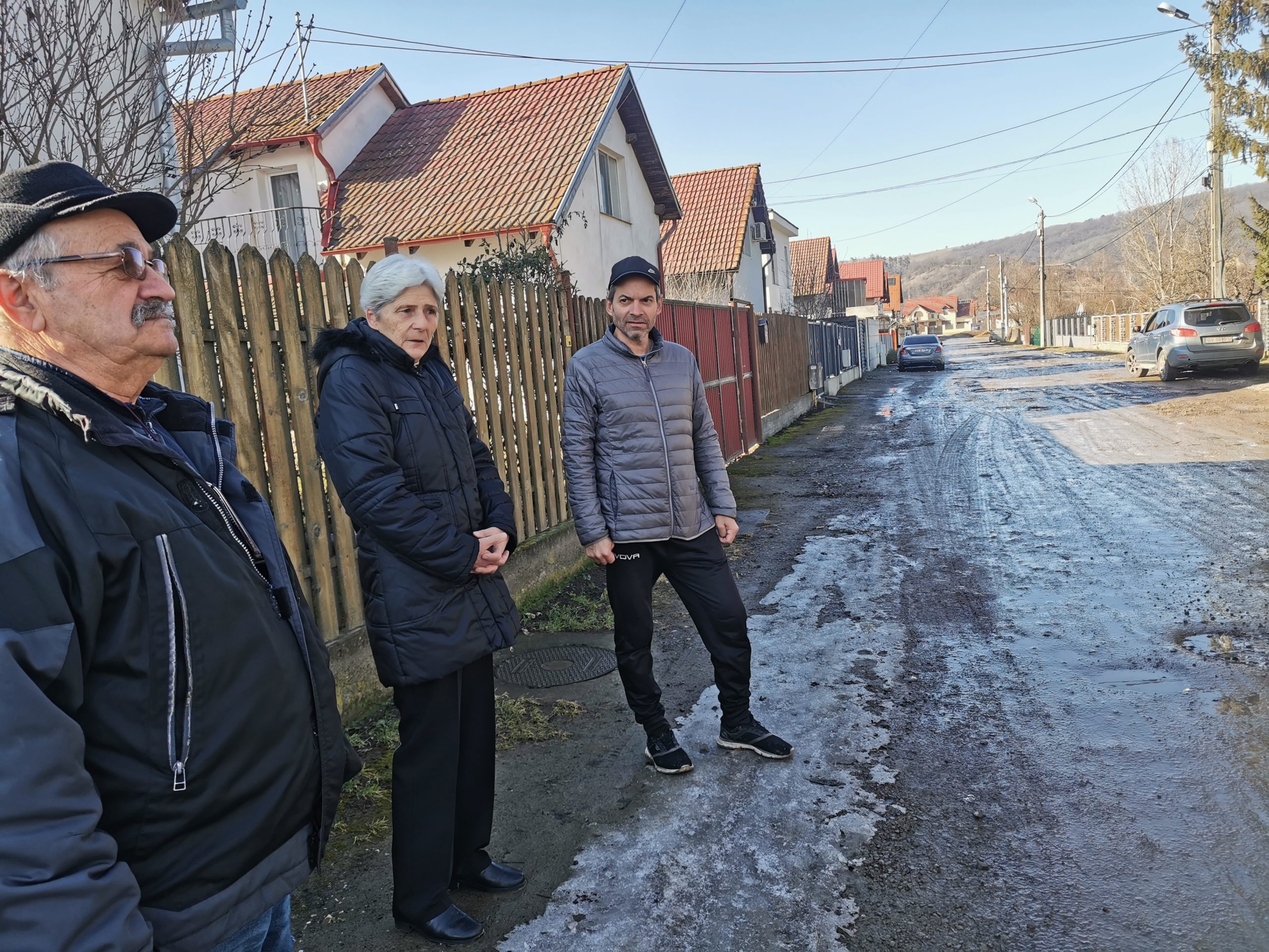 • ,,Am depus sesizări la Primărie, am fost la primar, niciodată n-au spus  NU, dar nici n-a făcut nimic. I-am spus să pună criblură dacă nu pot asfalta să scăpăm de noroi și praf. Au venit cu niște deșeuri de material, s-a înălțat strada, dar noroiul este tot acolo. Veniseră un utilaj mic să scobească din nou strada, în bătaie de joc. Acum doi ani, am blocat mașinile să nu mai pună așa ceva pe stradă. Nu vor să asfalteze“ a spus un alt locatar.