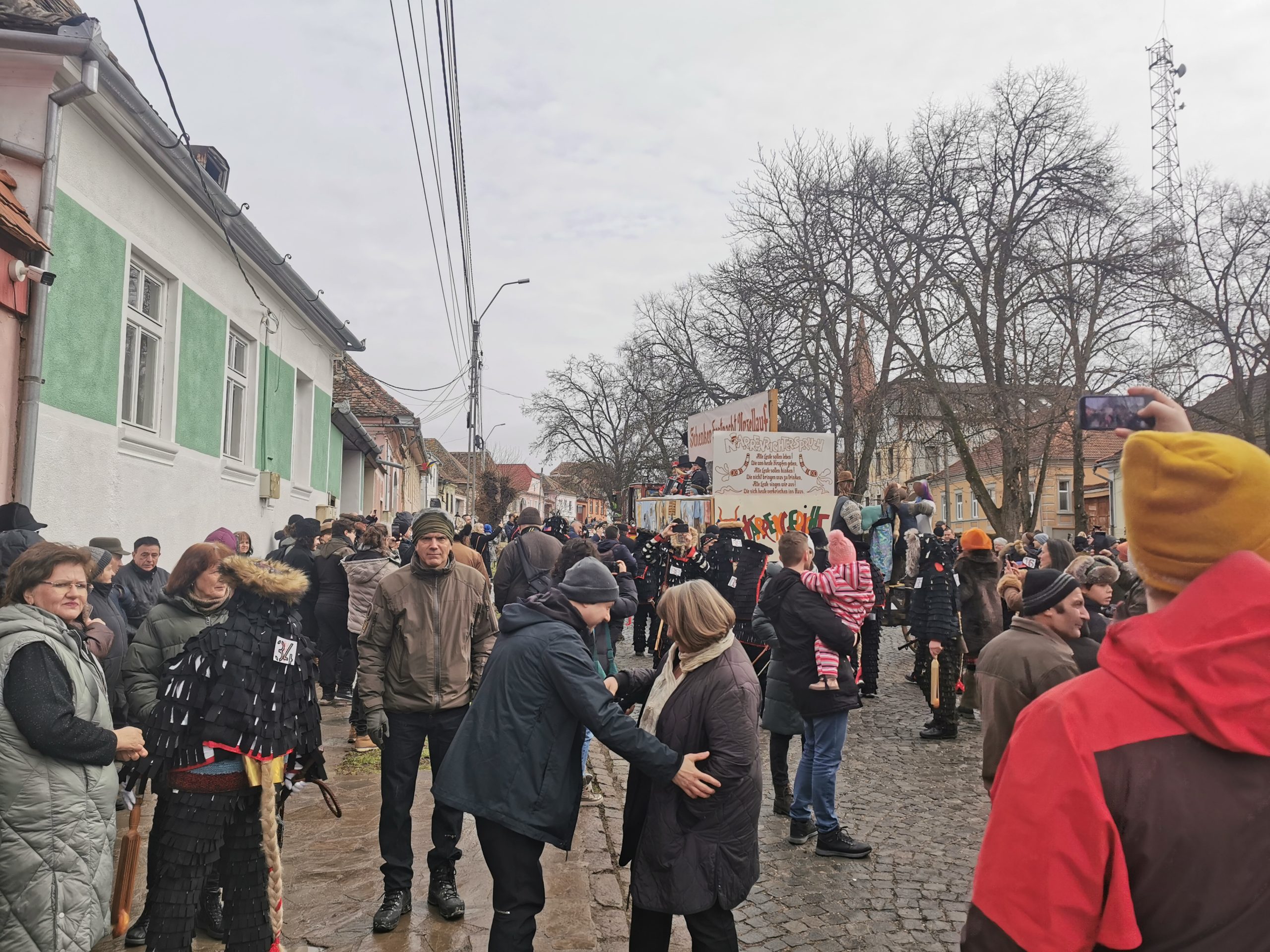 Măști, bice, clopote, zurgălăi, zgomot și veselie. O astfel de atmosferă a fost la Cincu sâmbătă, 31 ianuarie 2026. Localitatea a fost dominată de manifestarea ,,Fuga Lolelor“, un vechi obicei al comunității, care este readus în actualitate în fiecare an de cincanii din sat și de pretutindeni. Asociația ,,Fuga lolelor Cincu“ împreună cu Primăria Cincu au pregătit din timp evenimentul, iar iubitorii de tradiții și-au pregătit cu migală costumele speciale. Marlene Herberth, sufletul sărbătorii, a reușit să aducă în sat 92 de lole, majoritatea cincani ai locului sau stabiliți în Germania, dar s-au alăturat Lolelor locale și 20 de Lole din Agnita. Lolele amintesc de vechile bresle care au funcționat în Transilvania în evul mediu. Se vehiculează anul 1689 ca vechime a breslelor din Transilvania, așa cum explică Marlene Herbeth. Lolele sunt personaje mascate, negre la Cincu, care însoțeau procesiunea de predare a lăzii breslei, iar lolele o protejau. Evenimentul a început la ora 10.00, în fața Primăriei Cincu. Un Car alegoric ornat în spiritul sărbătorii însoțit de Lole a poposit în centrul satului, unde a fost întâmpinat de primarul comunei, Gheorghe Mirca.