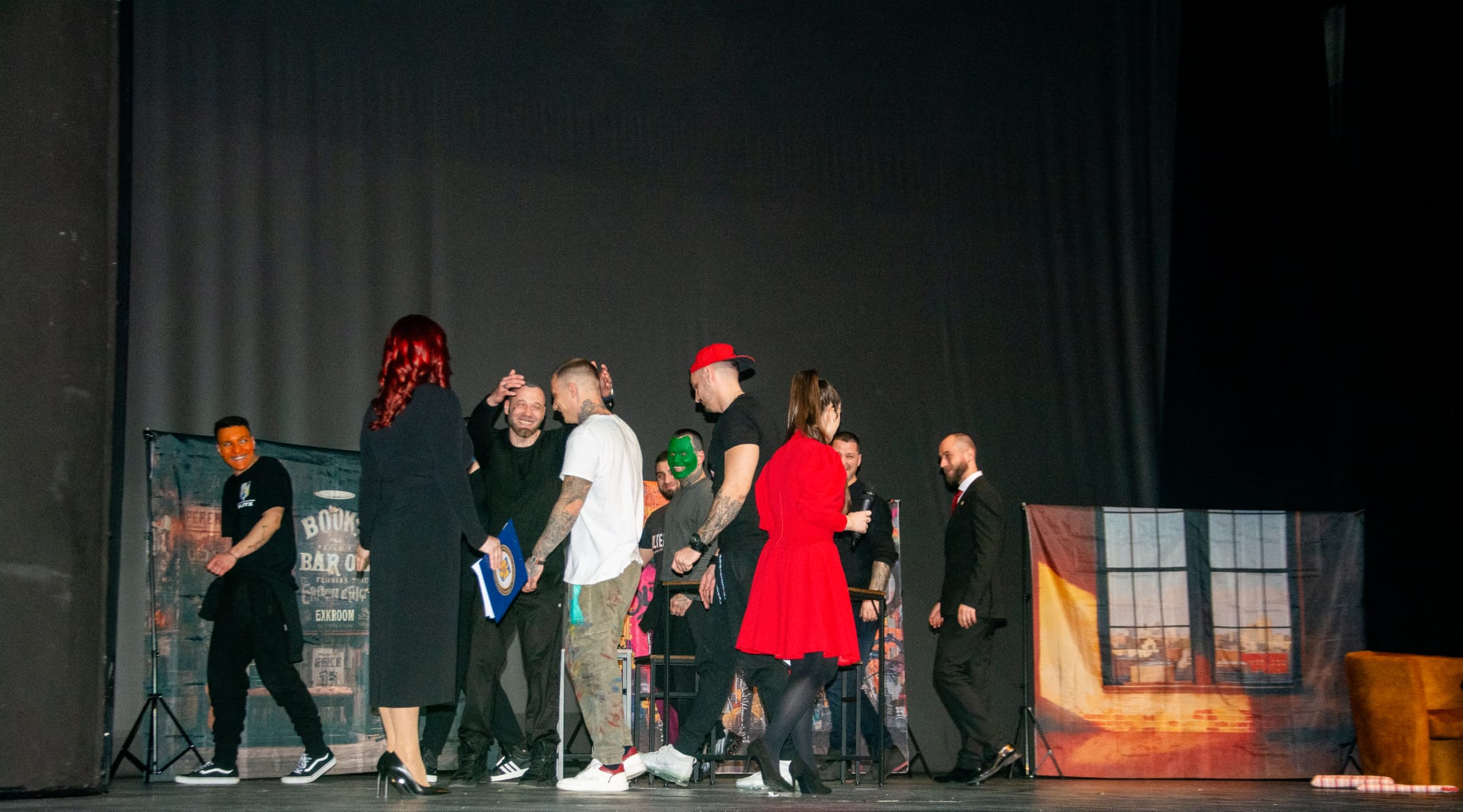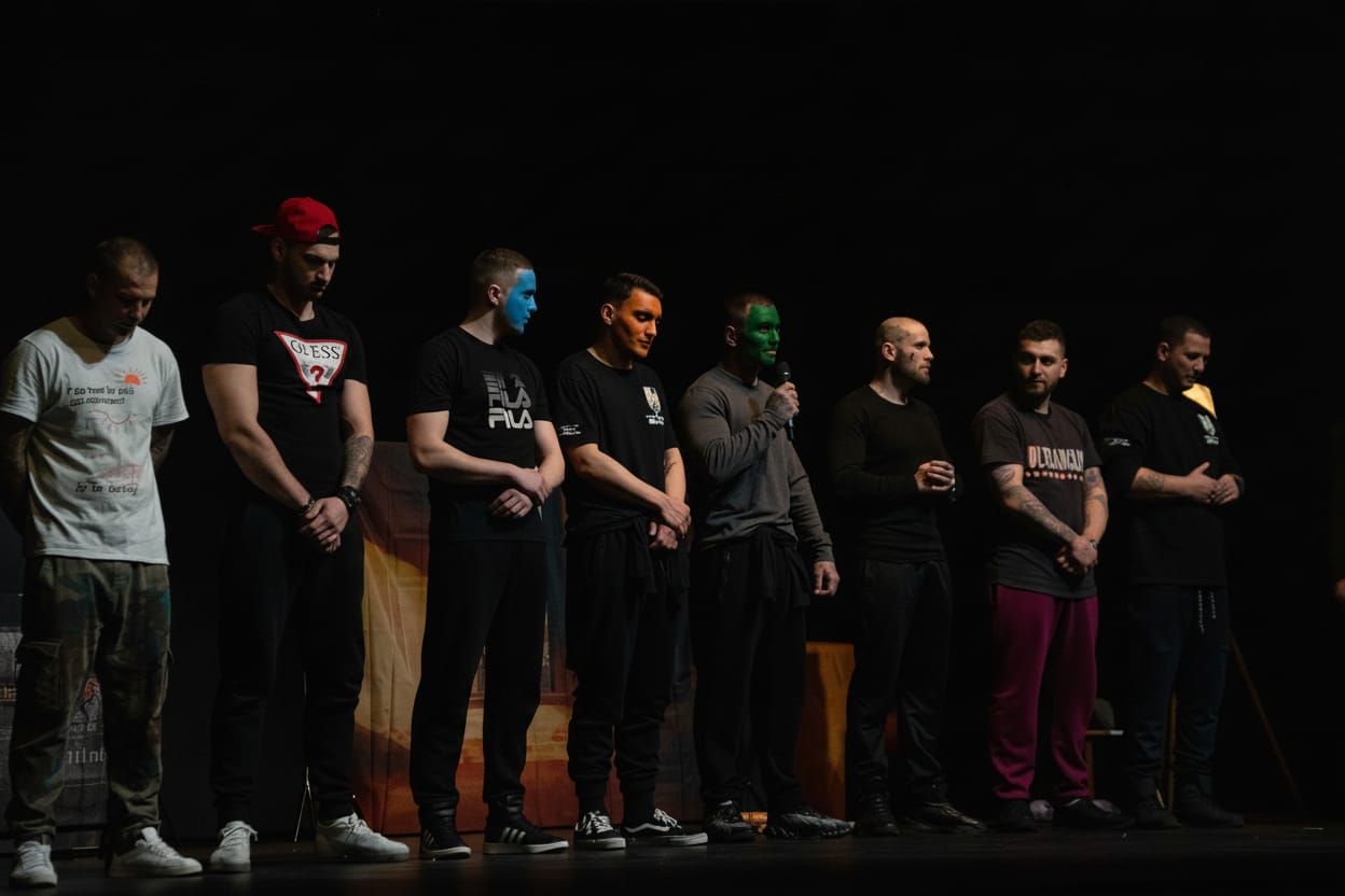 Foto și Video. Audiență mare la piesa ,,Cinci avioane în șapte ani“ prezentată pe scena Teatrului ,,Sică Alexandrescu“ Brașov. ,,Lăsați orice anturaj care vă influențează în rău, nu vă apucați de droguri niciodată“ Mihai, consumator de droguri, trupa Blitz a Penitenciarului Arad