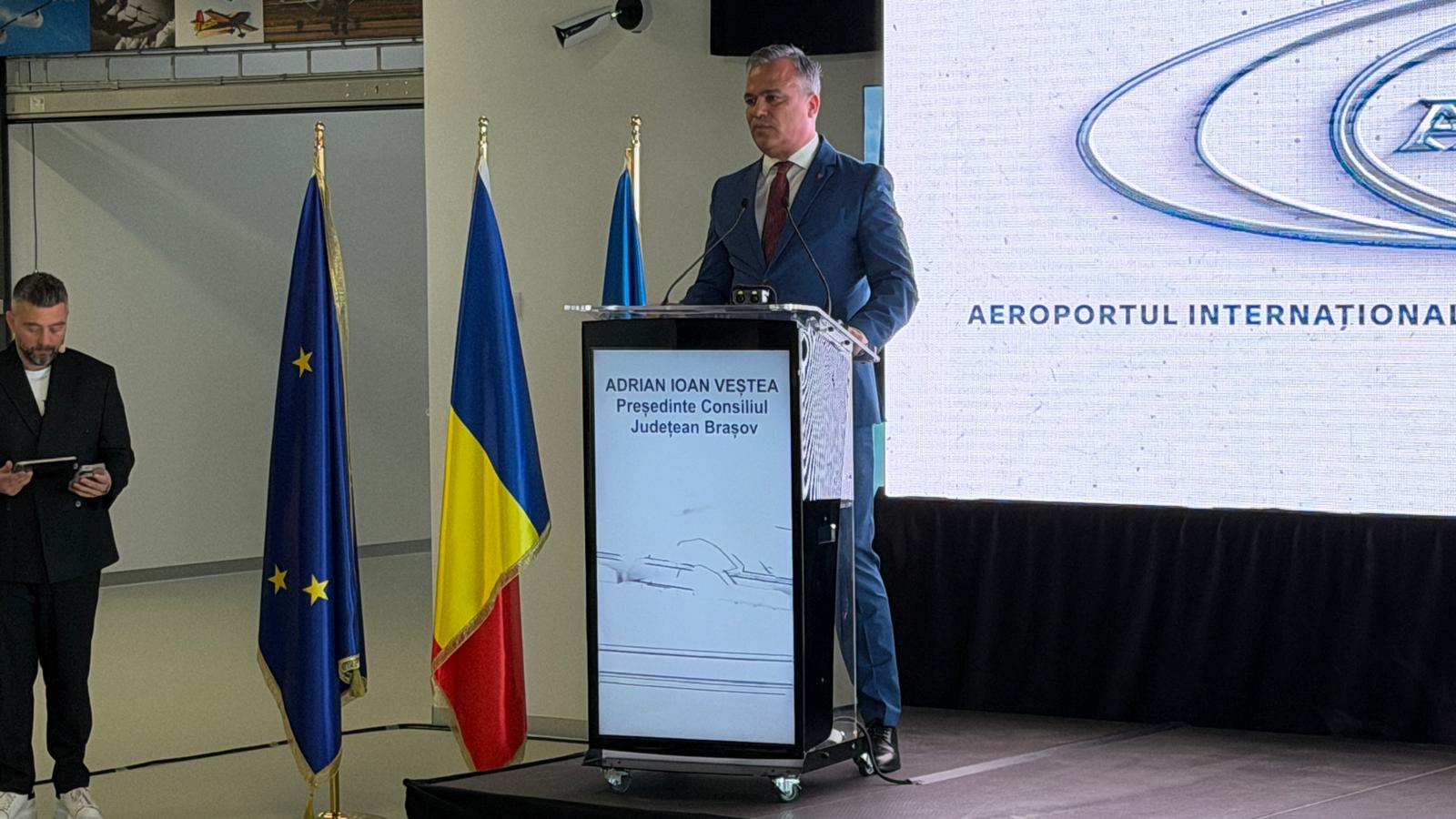 La inaugurarea noului terminal de pasageri al Aeroportului Internațional Mihail Kogălniceanu Constanța desfășurată marți, 17 martie a.c., Adrian Veștea, președintele CJ Brașov a vorbit despre Aeroportul Internațional Brașov.