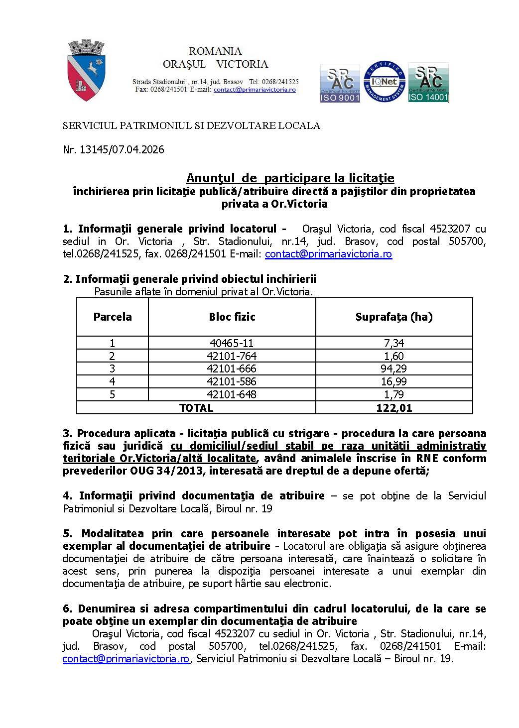Mică publicitate Anunt licitație Or. Victoria De către monitorfg.ro - aprilie 9, 2026 0 12 Facebook Twitter Pinterest WhatsApp