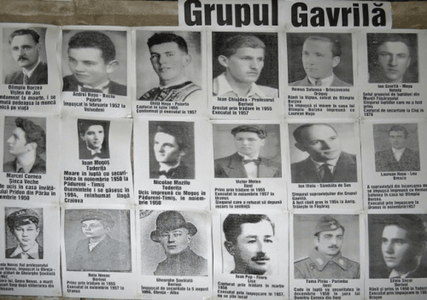 Grupul Gavrilă: Ion Gavrilă Ogoranu (Moşu), Ion Ilioiu, Victor Metea, Remus Sofonea (Brâncoveanu), Laurean Haşu (Leu), Ioan Chiujdea (Profesorul), Andrei Haşu (Baciu), Ghiţă Haşu (Rucăreanu), Jean Pop (Fileru), Toma Pirău (Porâmbu), Ioan Mogoş, Nicolae Mazilu, Silviu Socol, Ioan Novac (Nelu), Gelu Novac, Gheorghe Șovăială, Marcel Cornea, Virgil Radeș, Petru Novac, Gheorghe Duminecă,  Nicolae Stanciu. (Lucia BAKI)