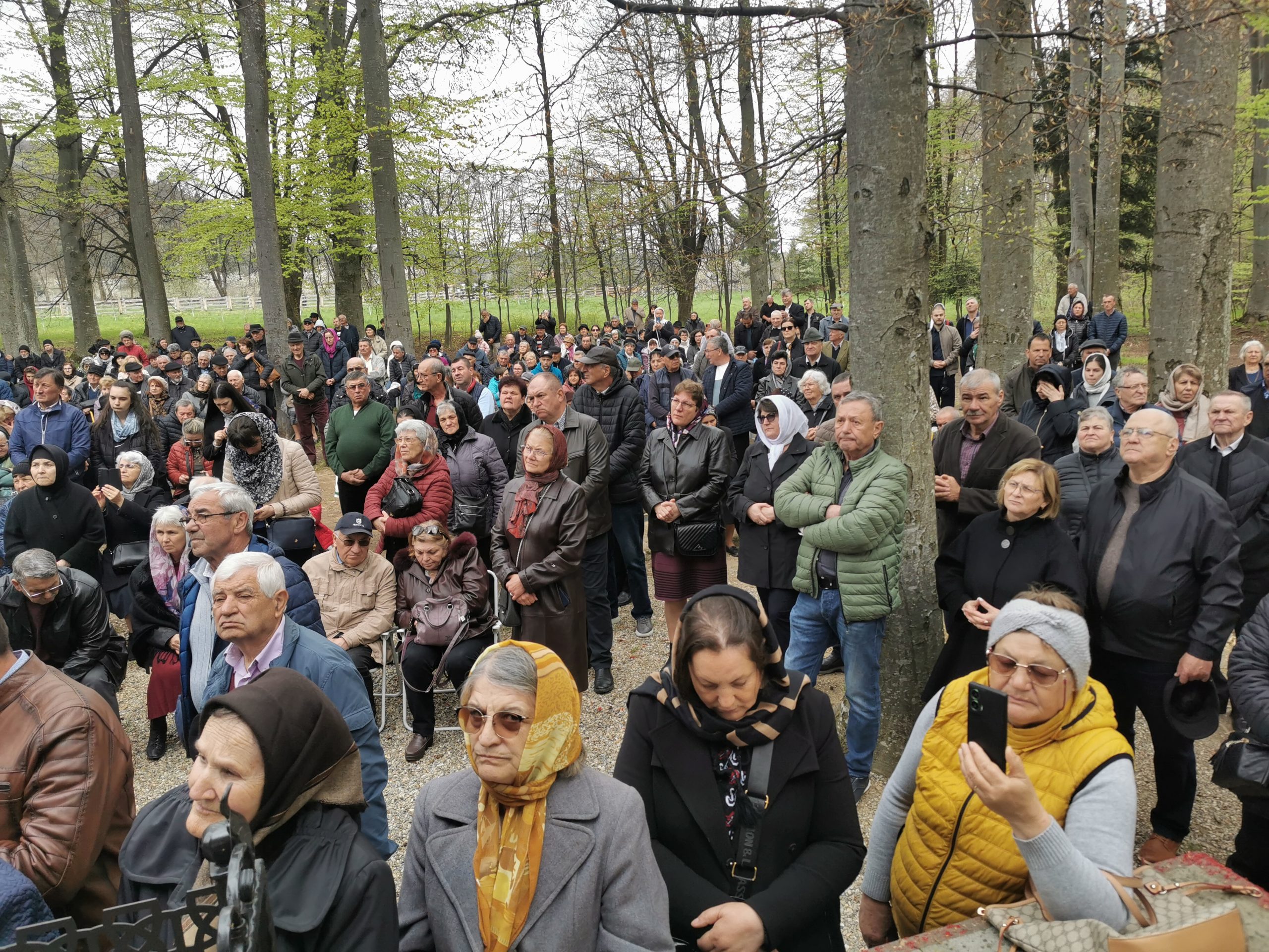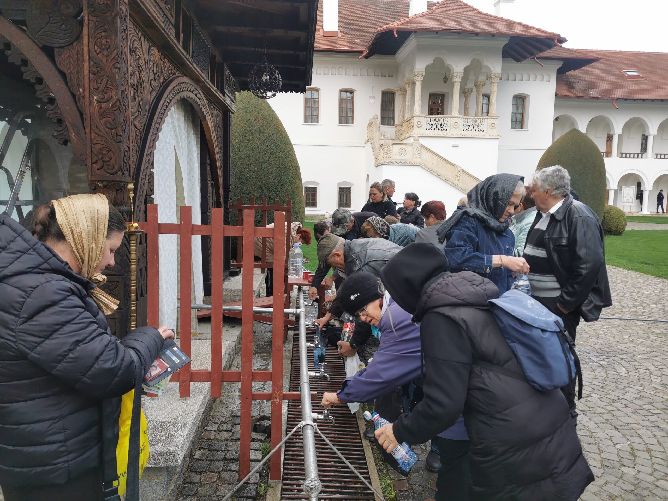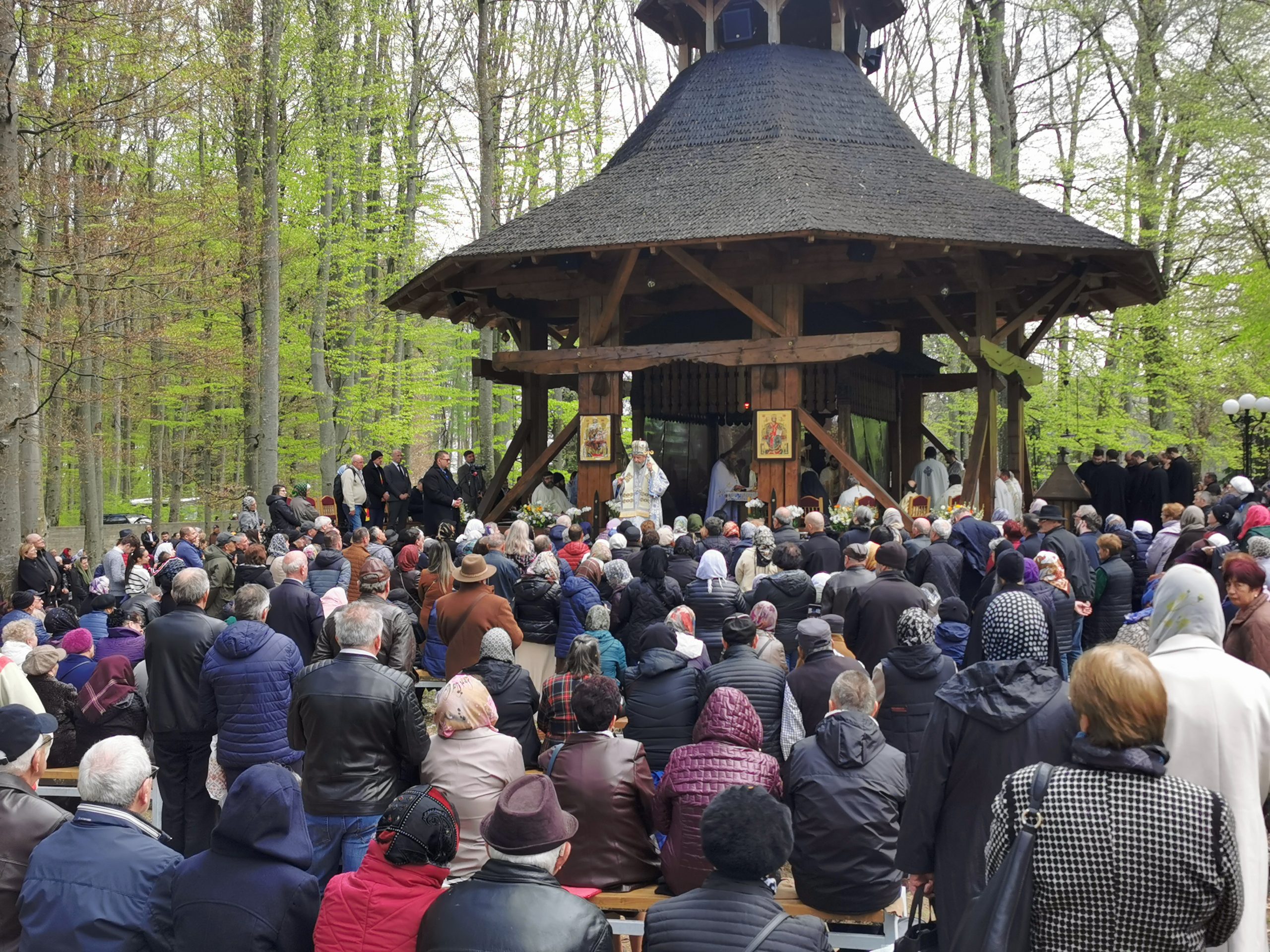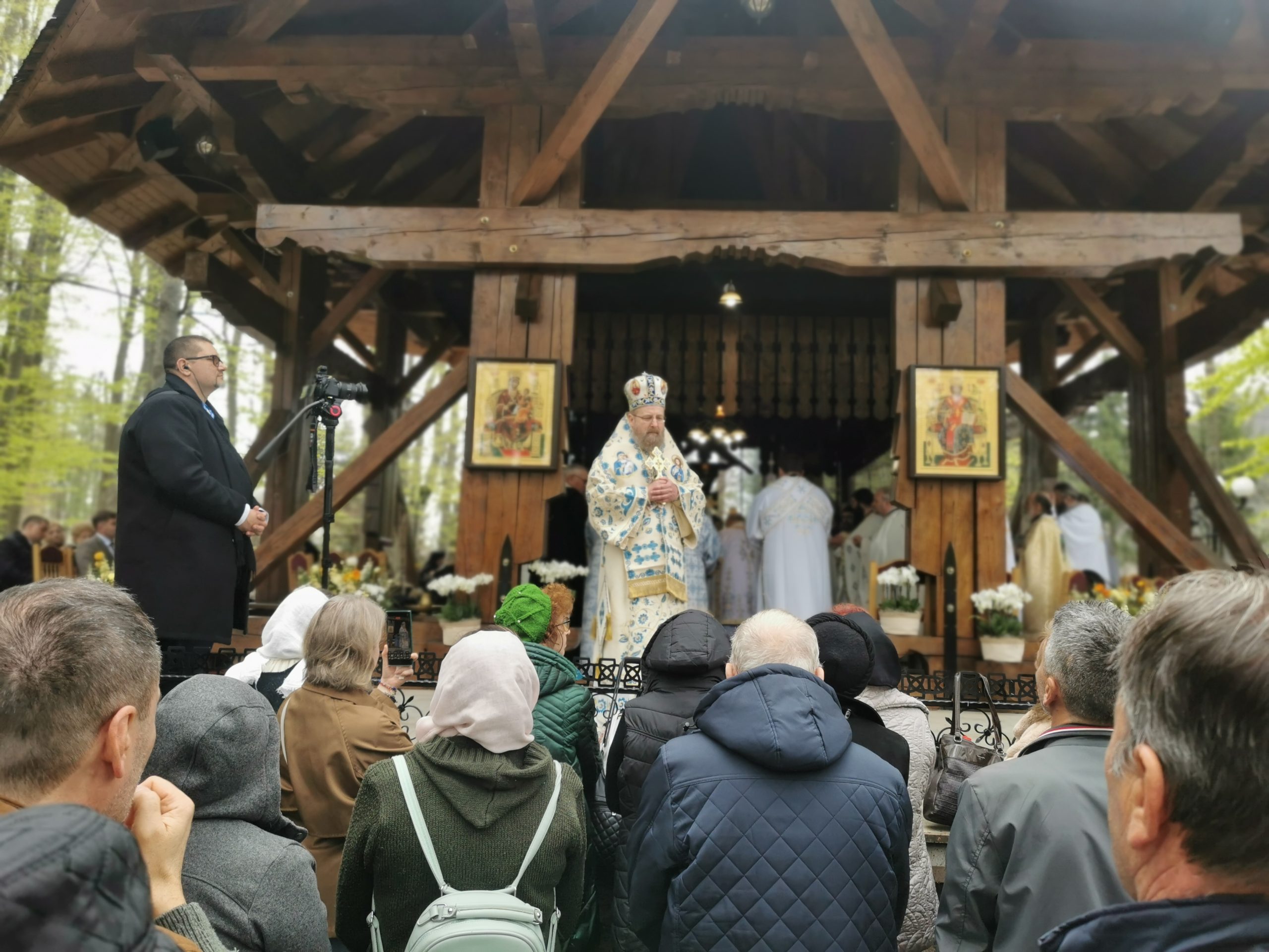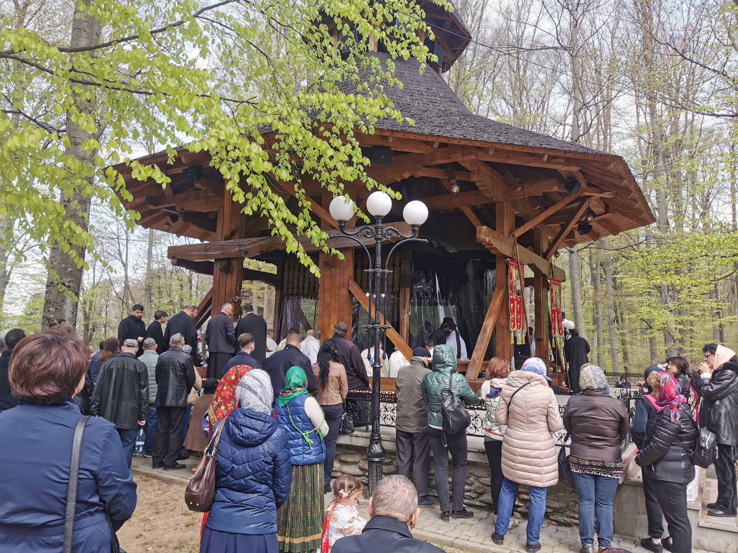 Foto și Video. Pelerinaj la Mănăstirea Brâncoveanu de Izvorul Tămăduirii. Slujba religioasă s-a oficiat la altarul din pădure. Participanții la hram au luat apă de la izvorul din incinta lăcașului de cult