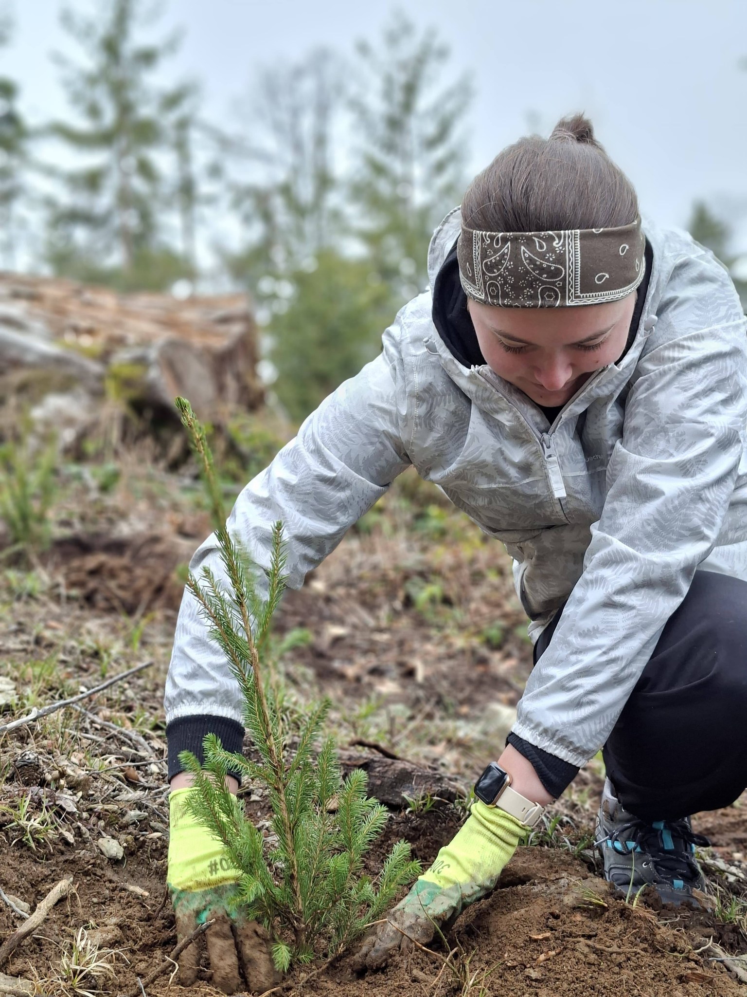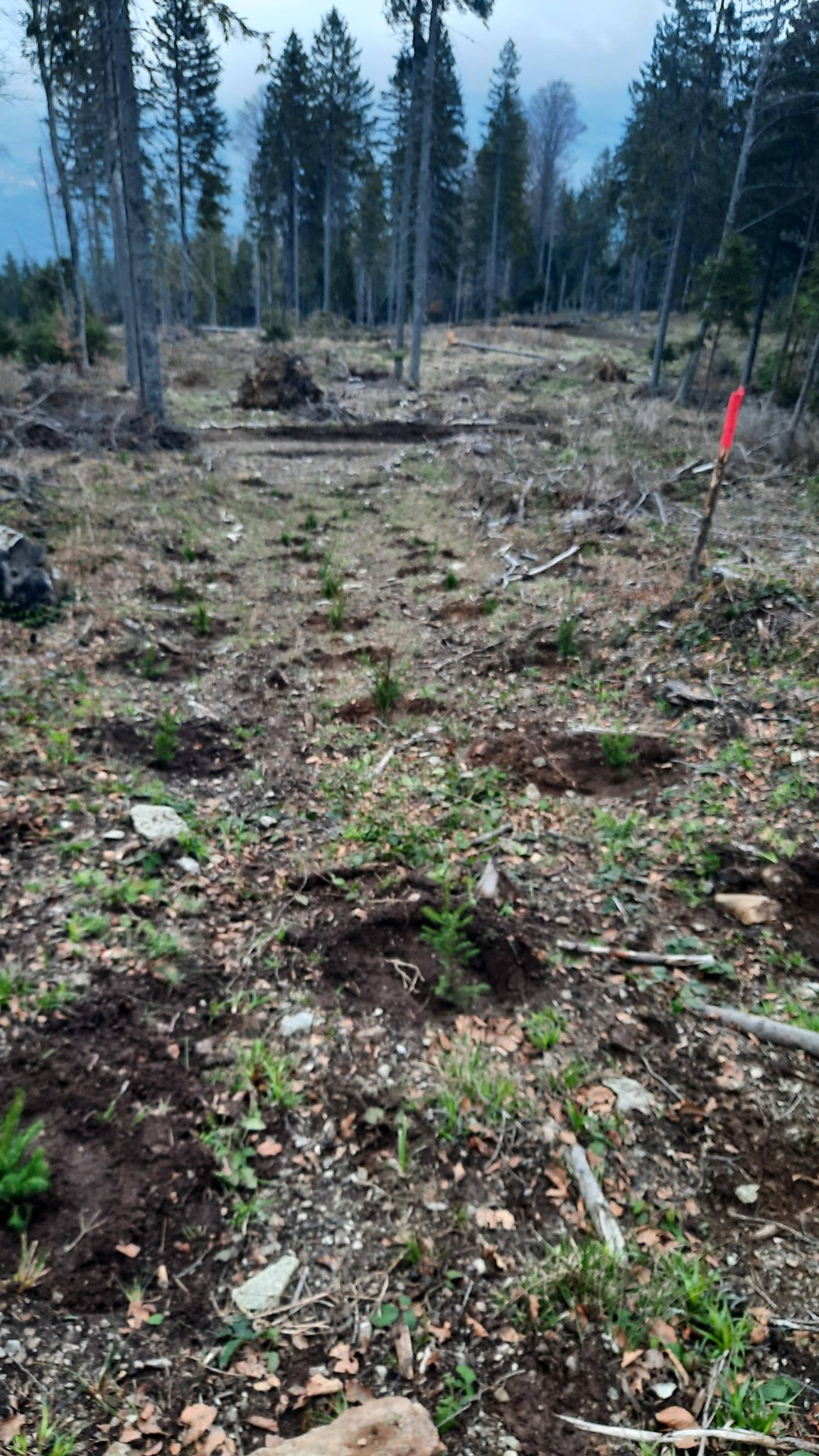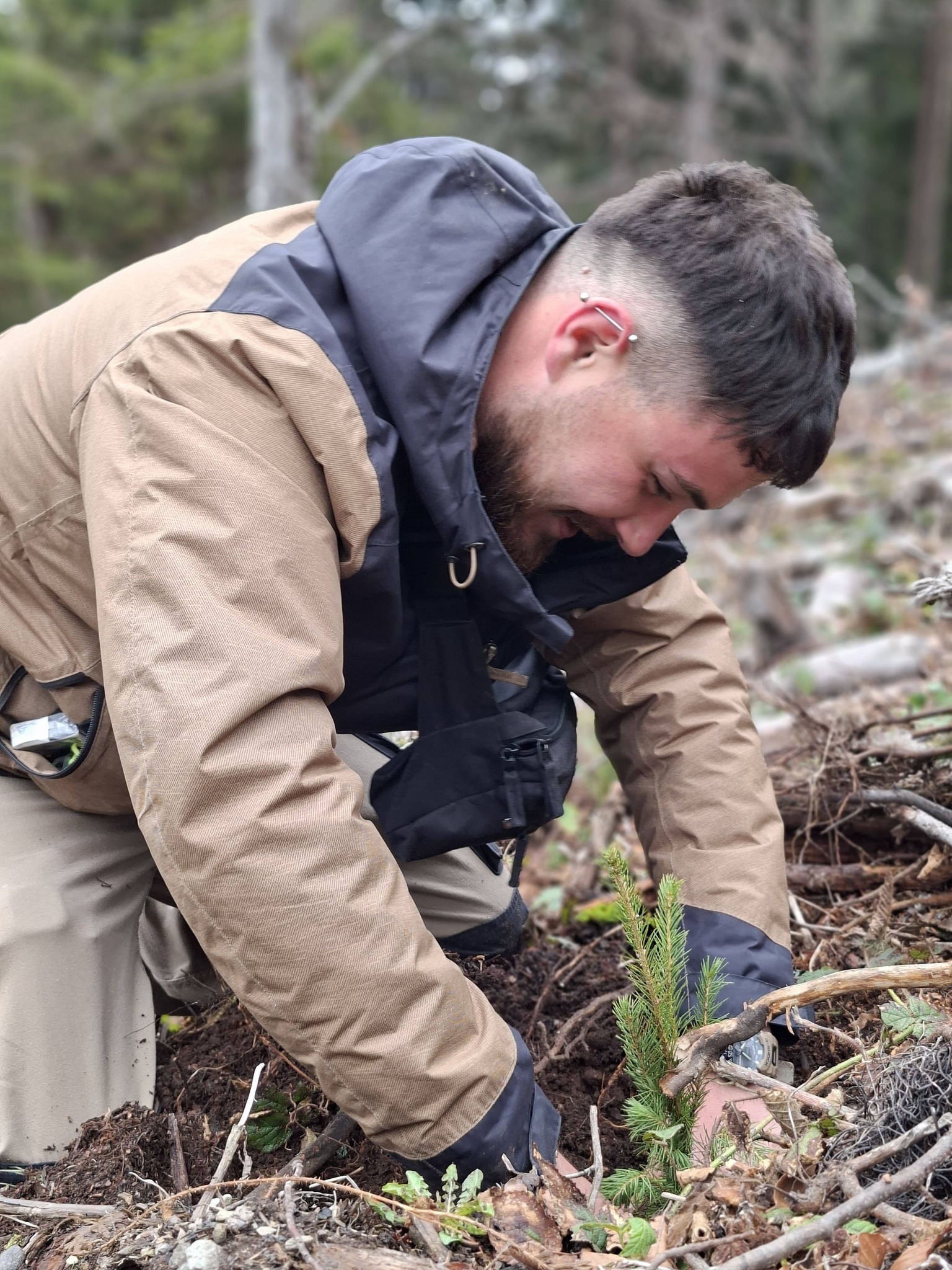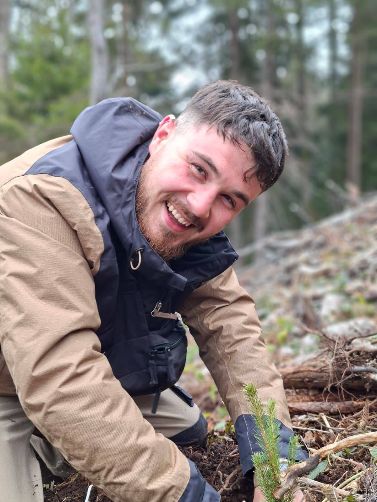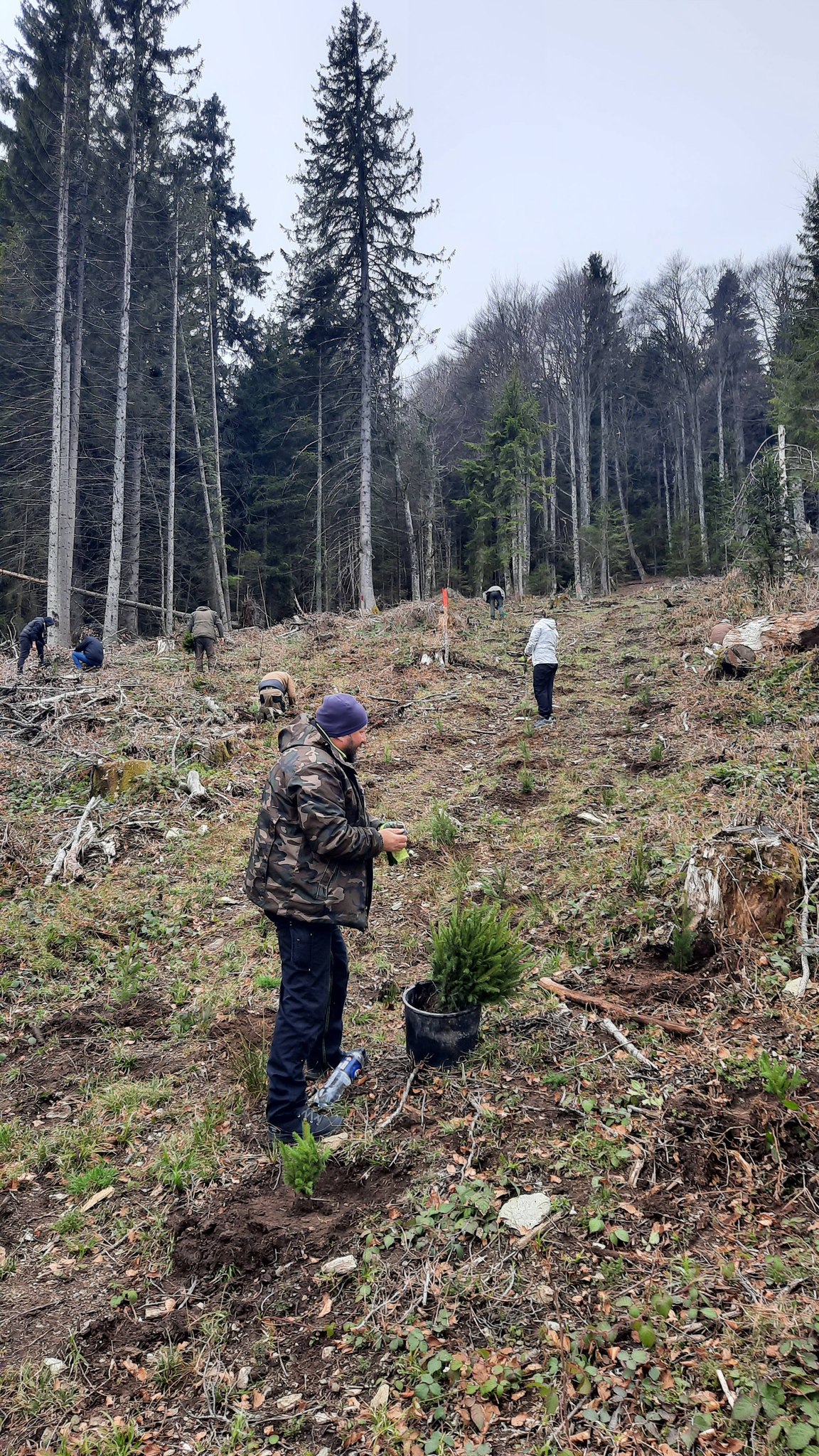 Foto. Ocolul Silvic ,,Pădurile Făgărașului“, o nouă acțiune de plantare puieți de molid în zona Lisa-Breaza. Personalul ocolului, ajutat de studenții de la Facultatea de Inginerie a Lemnului Brașov
